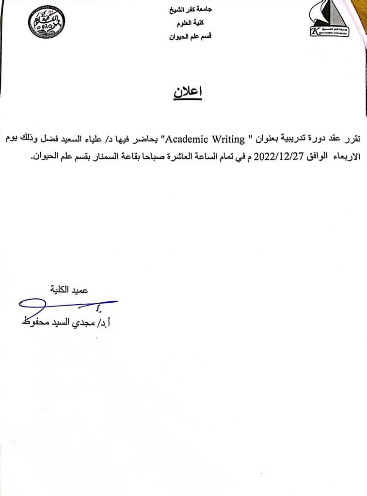 دورة تدريبية بعنوان (Academic Writing)