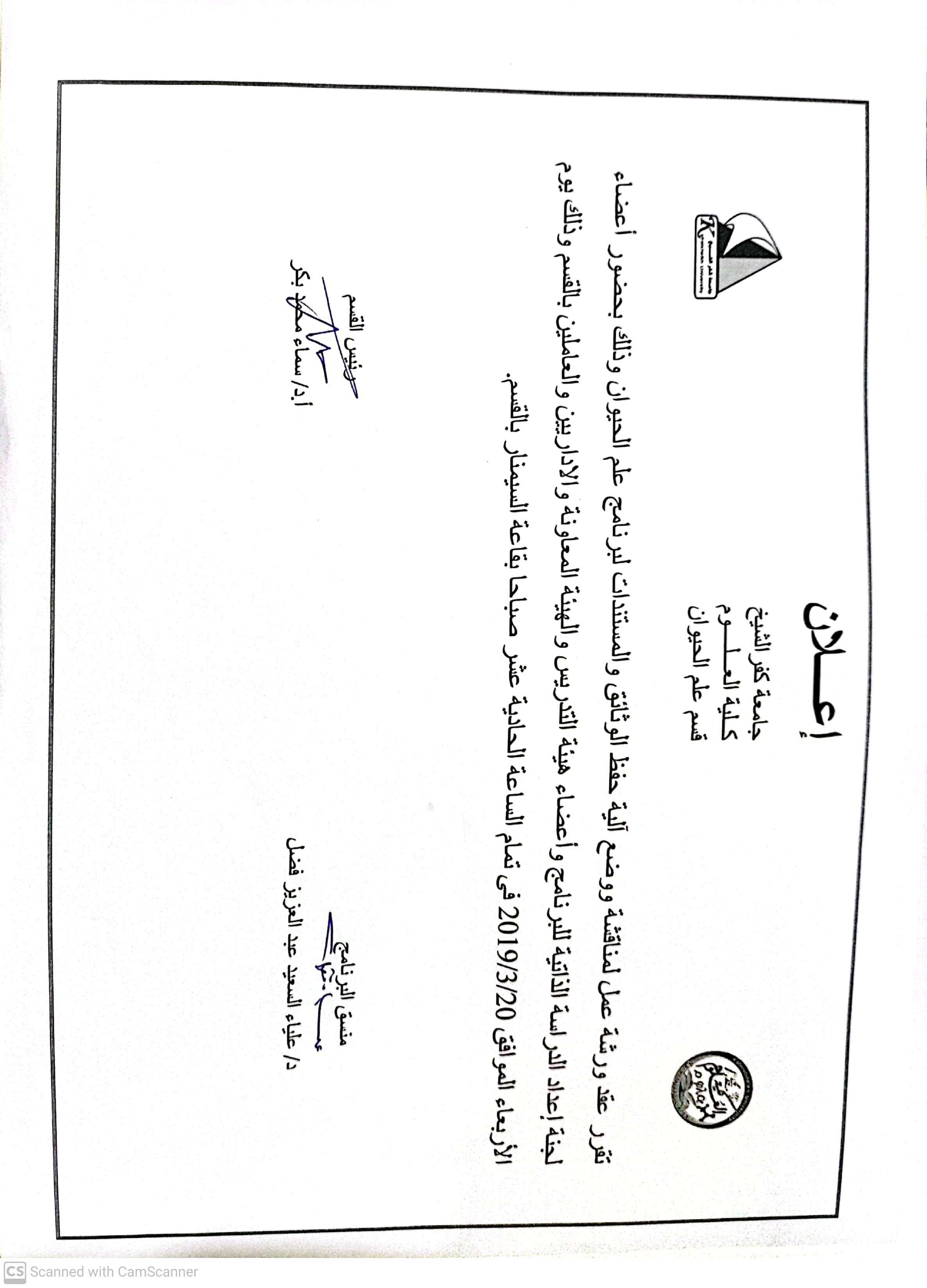 ورشة عمل لمناقشة ووضع الية حفظ الوثائق والمستندات لبرنامج علم الحيوان
