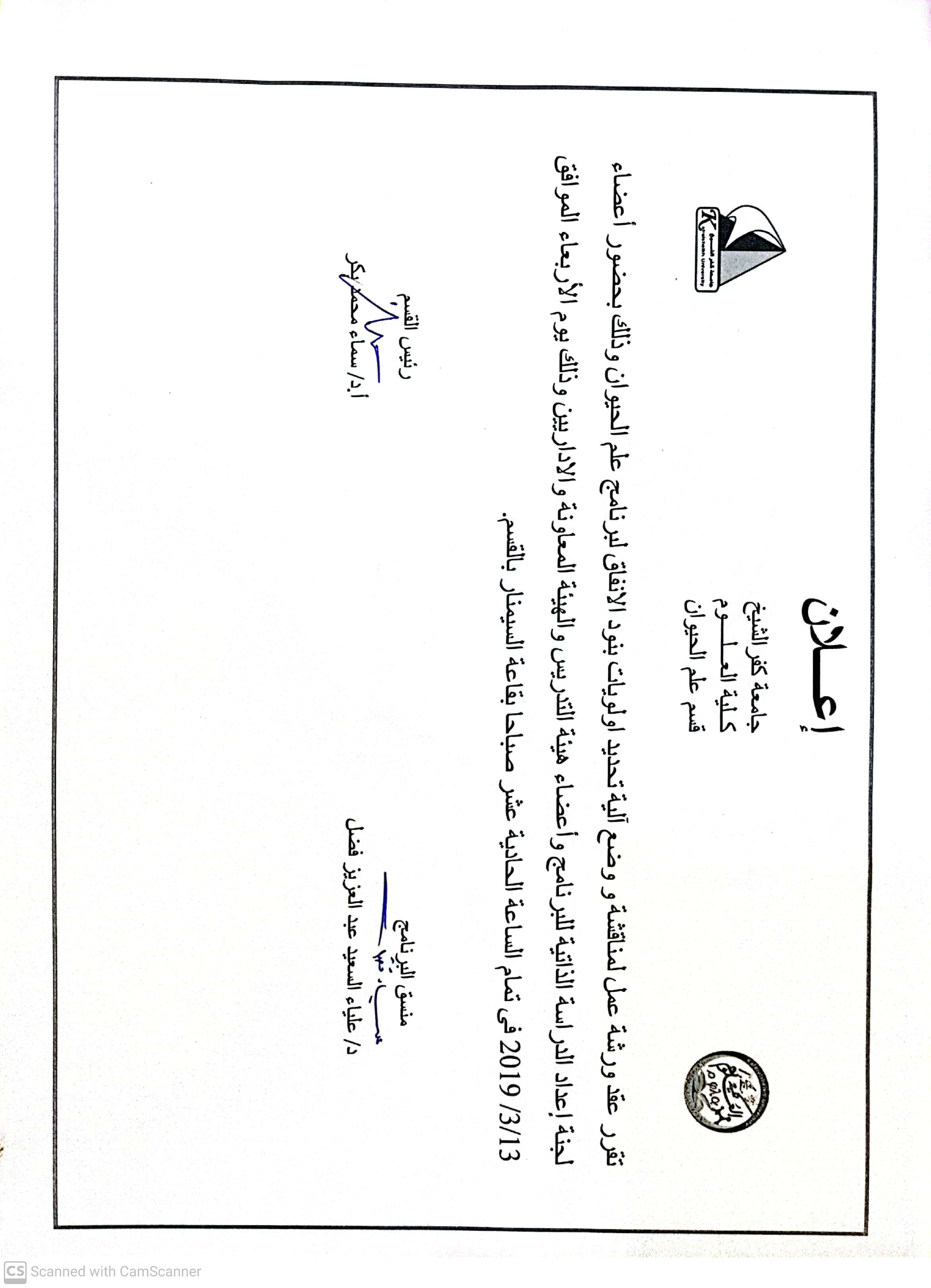 ورشة عمل لمناقشة ووضع الية تحديد اولويات بنود الانفاق لبرنامج علم الحيوان