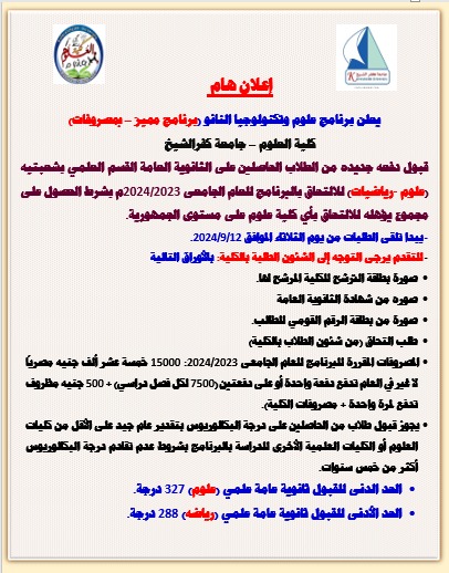 اعلان للطلاب الجدد (فتح باب التقدم لبرنامج علوم وتكنولوجيا النانو)