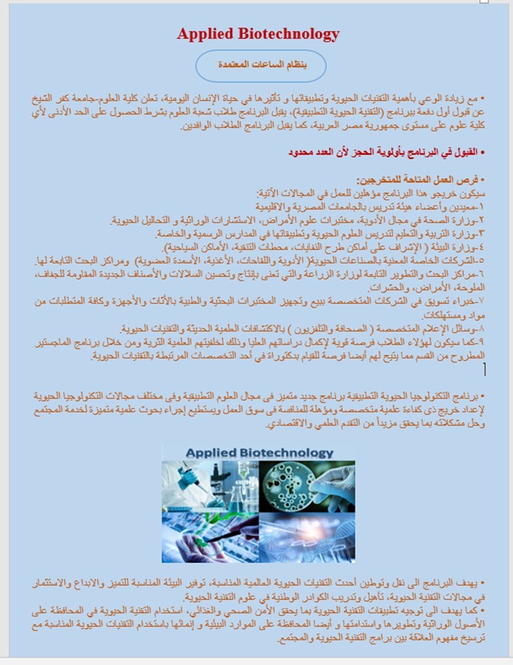 اعلان للطلاب الجدد (فتح باب التقدم لبرنامج التقنية الحيوية التطبيقية)