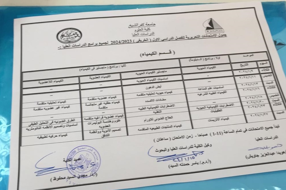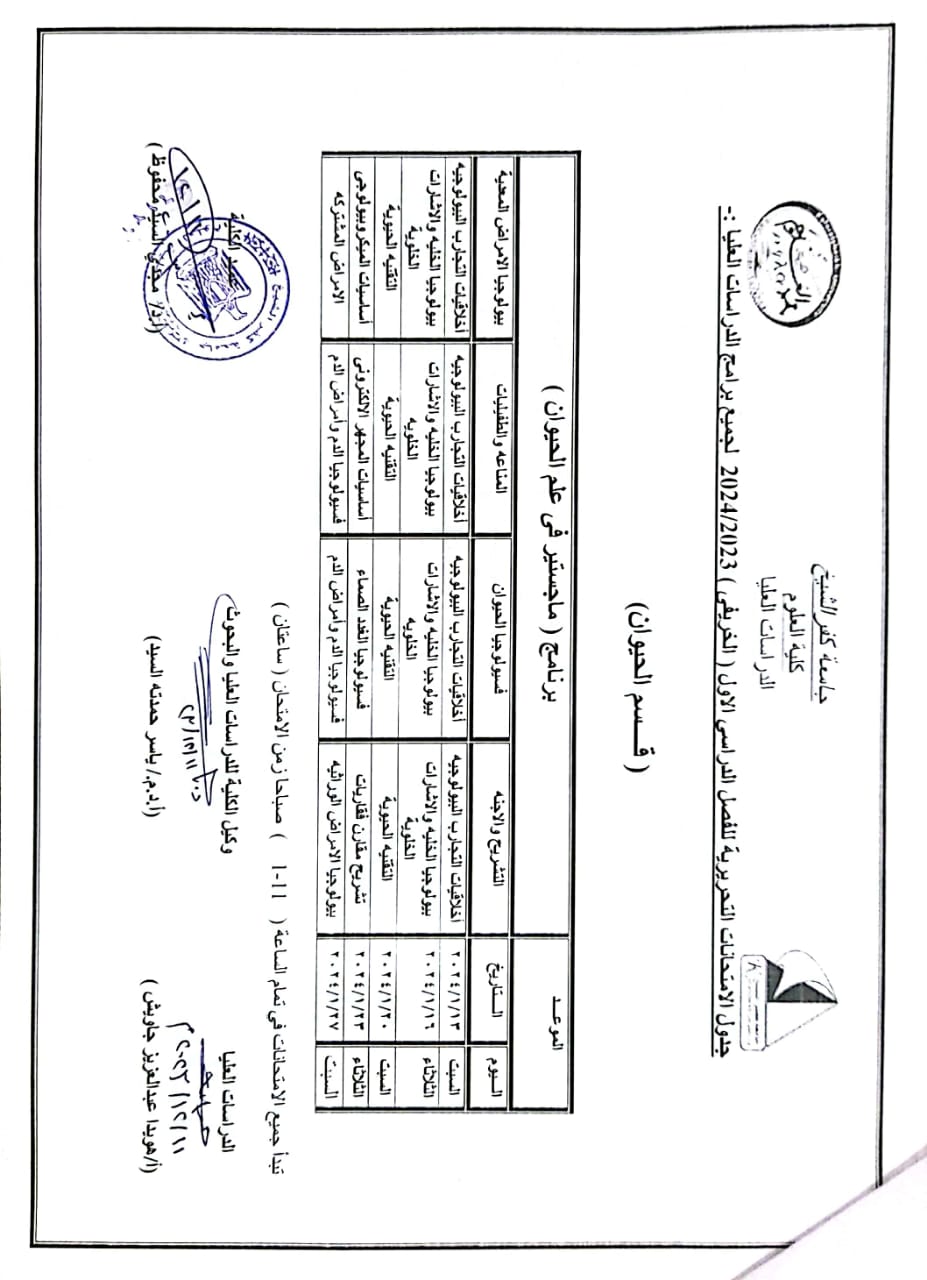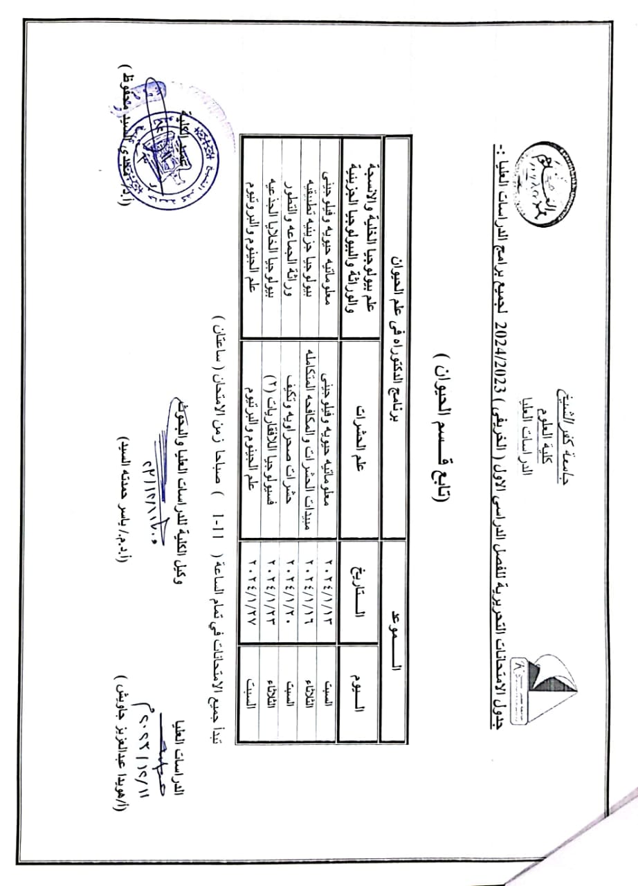 جدول الامتحانات النظرية لجميع برامج الدراسات العليا للفصل الخريفى 2023/2024