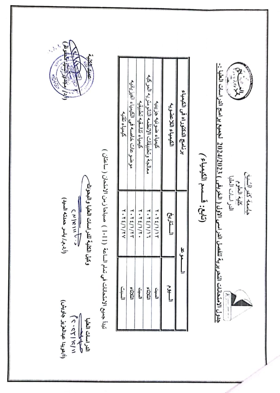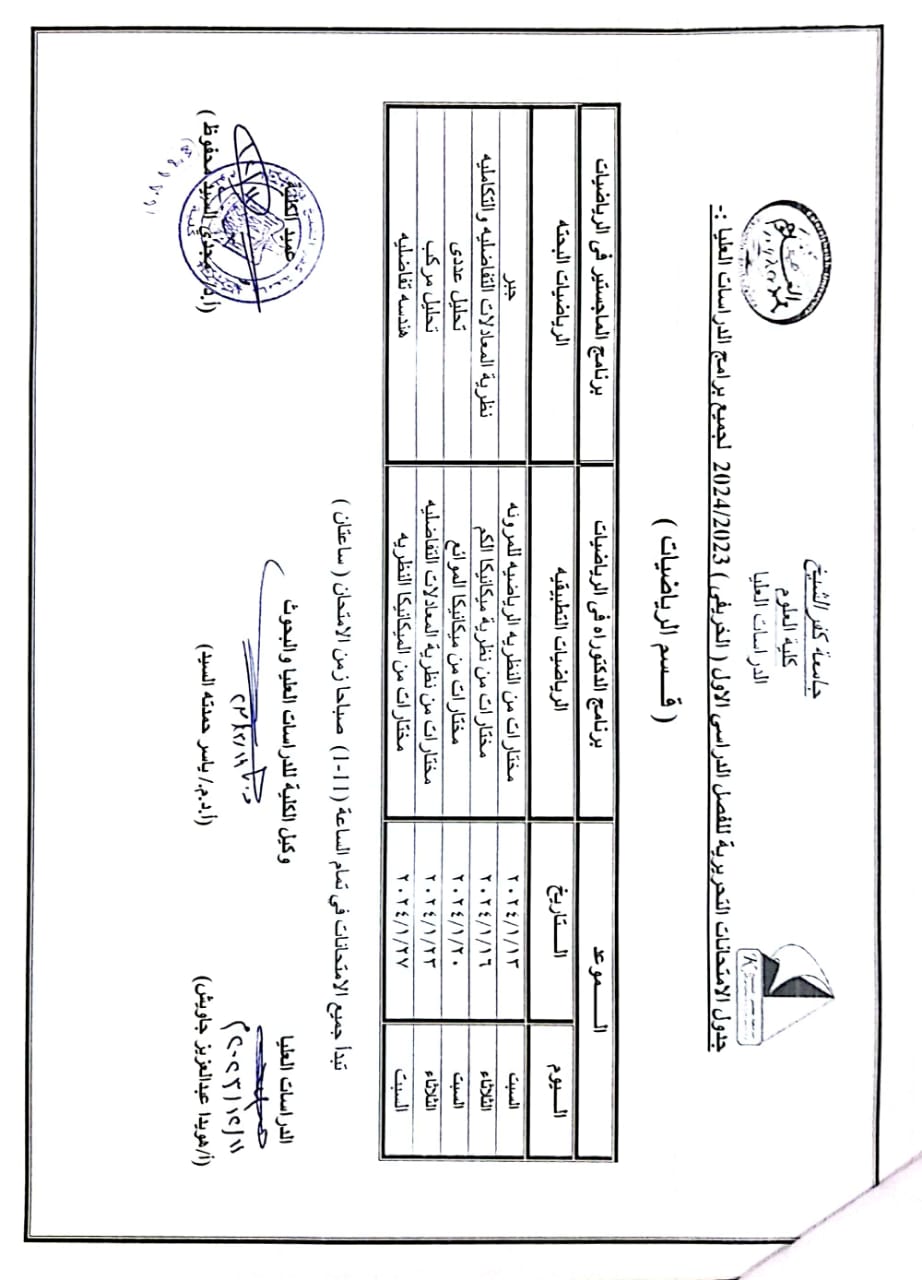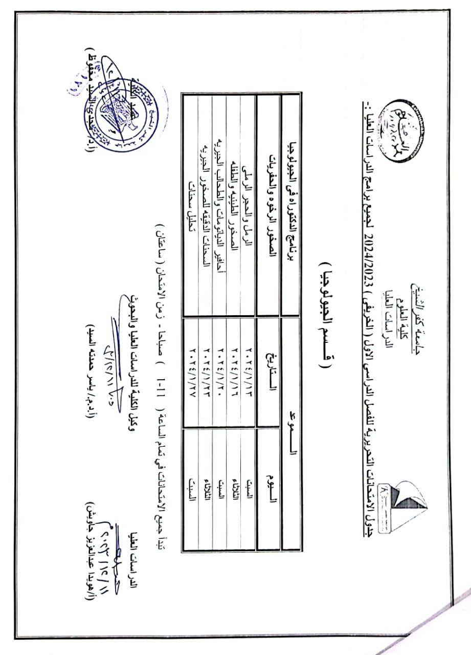 جدول الامتحانات النظرية لجميع برامج الدراسات العليا للفصل الخريفى 2023/2024