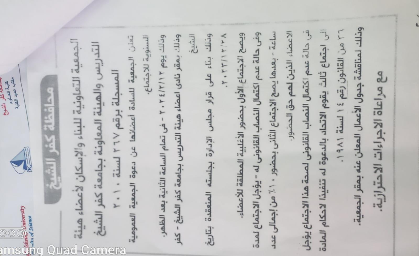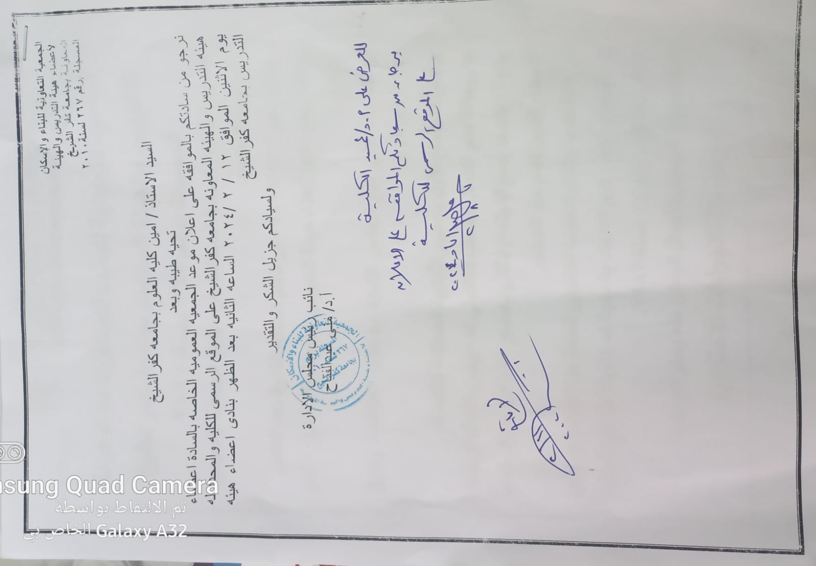اعلان (اجتماع الجمعية للبناء والاسكان لأعضاء هيئة التدريس والهيئة المعاونة بجامعة كفرالشيخ)