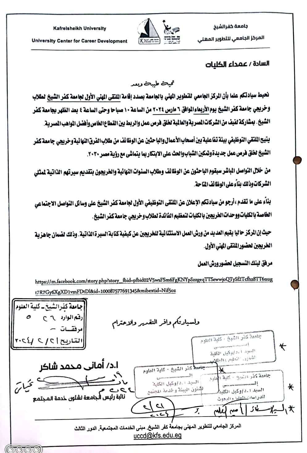 الملتقى المهنى الاول لجامعة كفرالشيخ لطلاب وخريجى جامعة كفر الشيخ