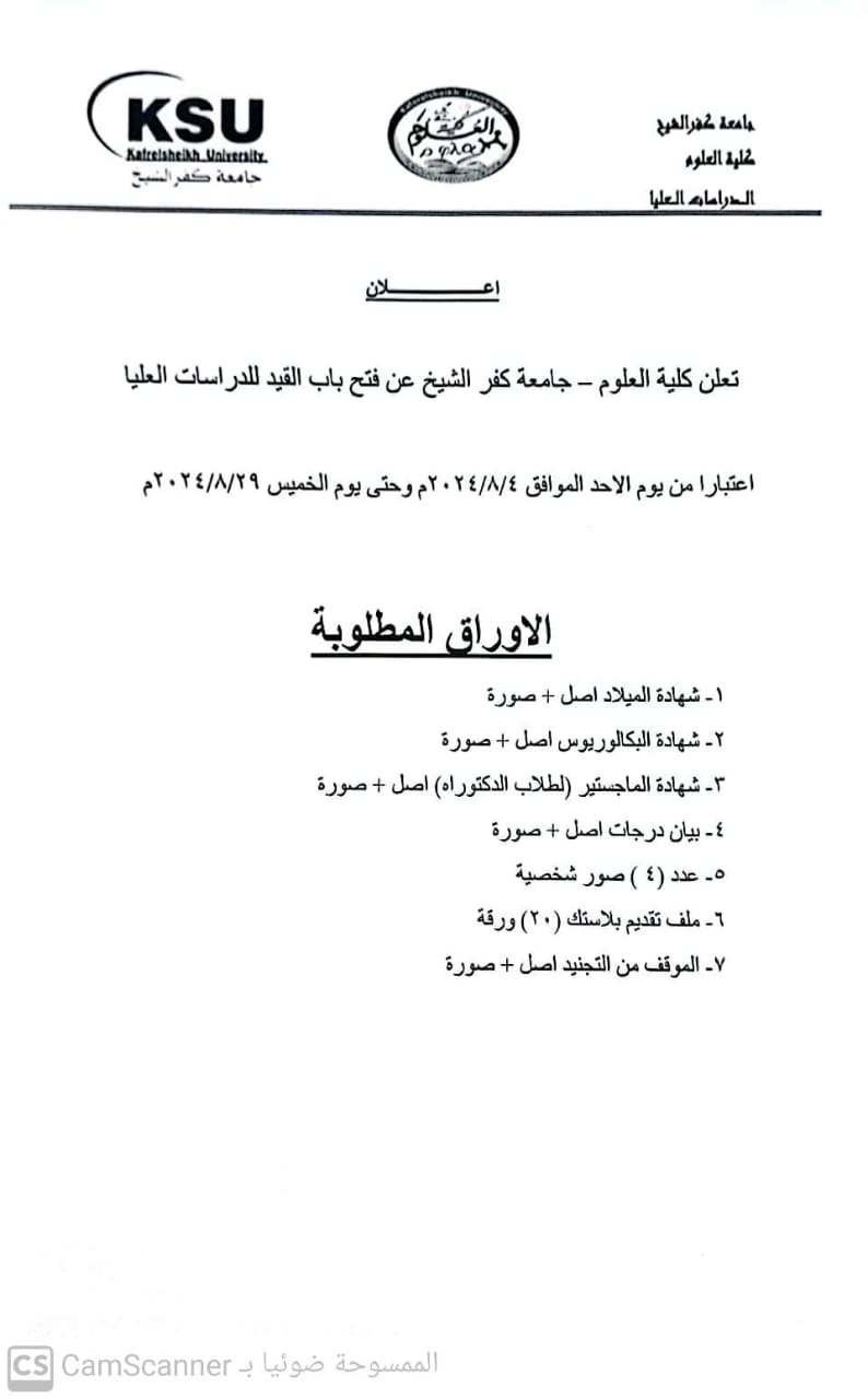 اعلان هام جدا (فتح باب القيد للدراسات العليا )لجميع البرامج للعام الجامعى 2024/2025
