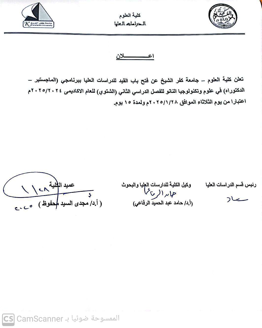اعلان هام جدا (فتح باب القيد للدراسات العليا ببرنامجى (الماجستير والدكتوراه ) فى علوم وتكنولوجيا النانو) )