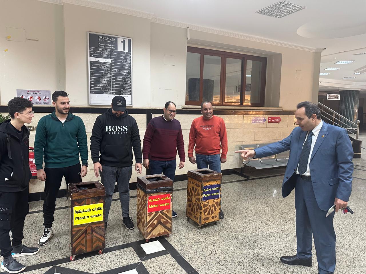 في إطار فعاليات وأنشطة الأسبوع البيئي والابتكار المستدام خلال الفترة من 16 إلى 20 مارس 2025، وتحت رعايةفي إطار فعاليات وأنشطة الأسبوع البيئي والابتكار المستدام خلال الفترة من 16 إلى 20 مارس 2025، وتحت رعاية السيد الأستاذ الدكتور محمد ايمن عاشور وزير التعليم العالي والبحث العلمي و الاستاذ الدكتور عبد الرازق دسوقي، رئيس جامعة كفرالشيخ، والسيد اللواء دكتور علاء عبد المعطي، محافظ كفرالشيح والاستاذ الدكتور أماني شاكر، نائب رئيس الجامعة لشؤون خدمة المجتمع وتنمية البيئة، وبمشاركة السادة نواب رئيس الجامعة الأستاذ الدكتور محمد مصطفى عبدالعال نائب رئيس الجامعة لشئون التعليم والطلاب و الأستاذ الدكتور إسماعيل إسماعيل ابراهيم السيد نائب رئيس الجامعة لشئون الدراسات العليا والبحوث، وإشراف تنفيذي ومتابعة الأستاذ الدكتور/ مجدي السيد محفوظ عميد الكلية، والأستاذ الدكتور/ جمعة السيد نعناعة أستاذ علوم البيئة ووكيل الكلية لشئون خدمة المجتمع وتنمية البيئة تم تنفيذ حملة داخل مدرجات ومعامل كلية العلوم للتأكيد على عملية فصل وتجميع القمامة بطريقة آمنة بيئيا.