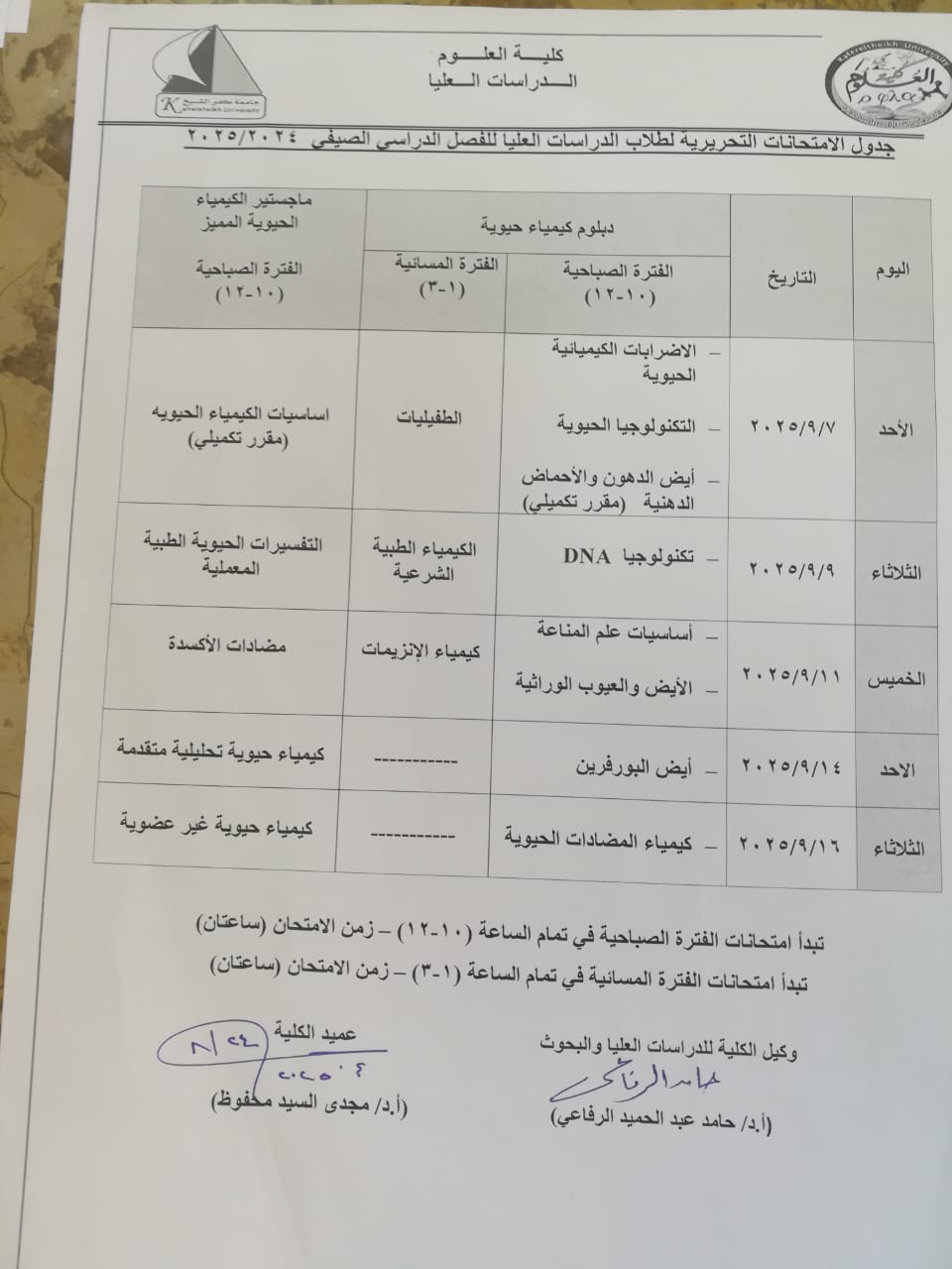 جدول الامتحانات النظرية للدراسات العليا للفصل الصيفى 2024/2025
