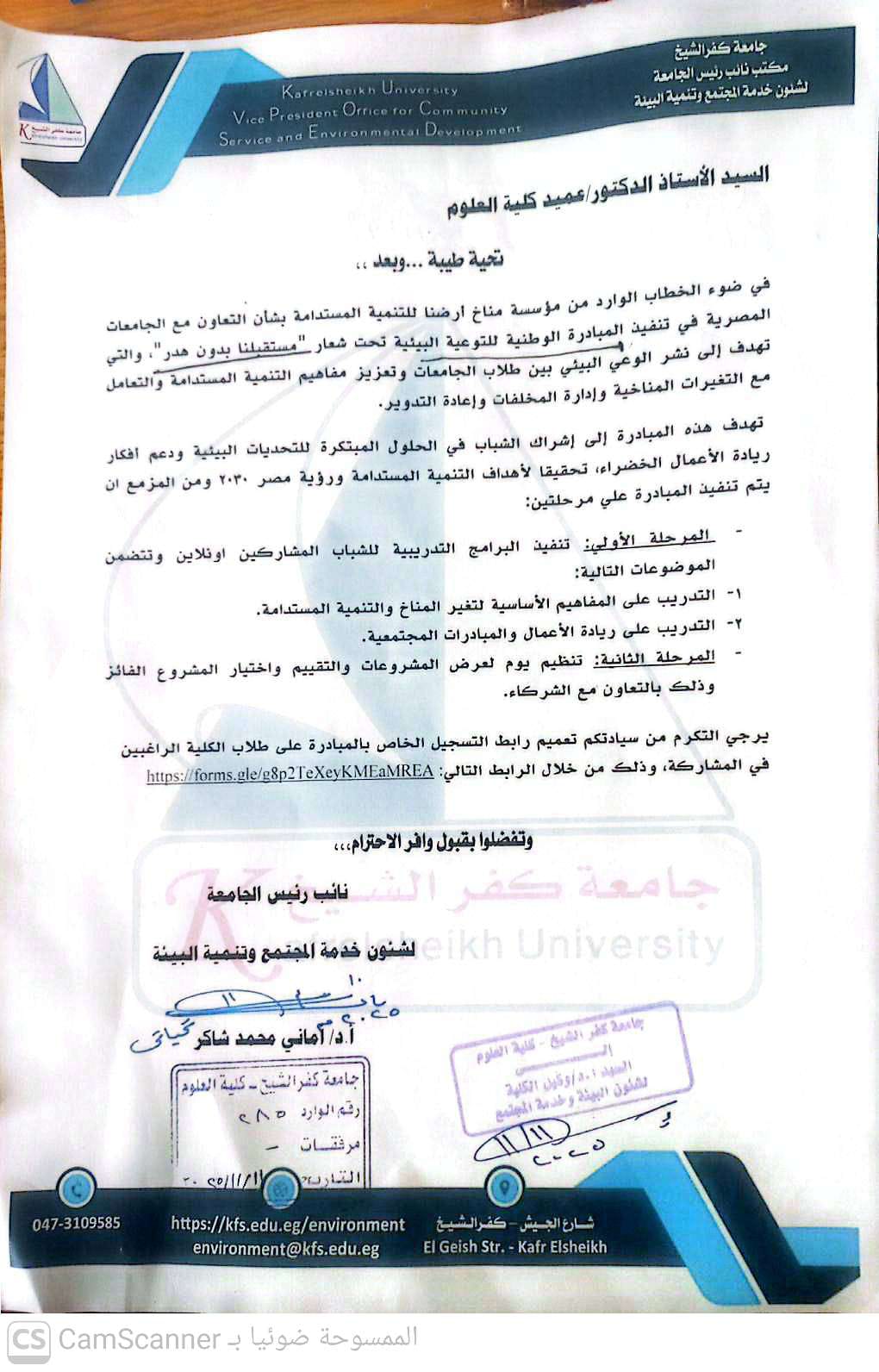 قطاع خدمة المجتمع وتنمية البيئة يدعو الطلاب للاشتراك فى المبادرة الوطنية للتوعية البيئية تحت شعار "مستقبلنا بدون هدر"