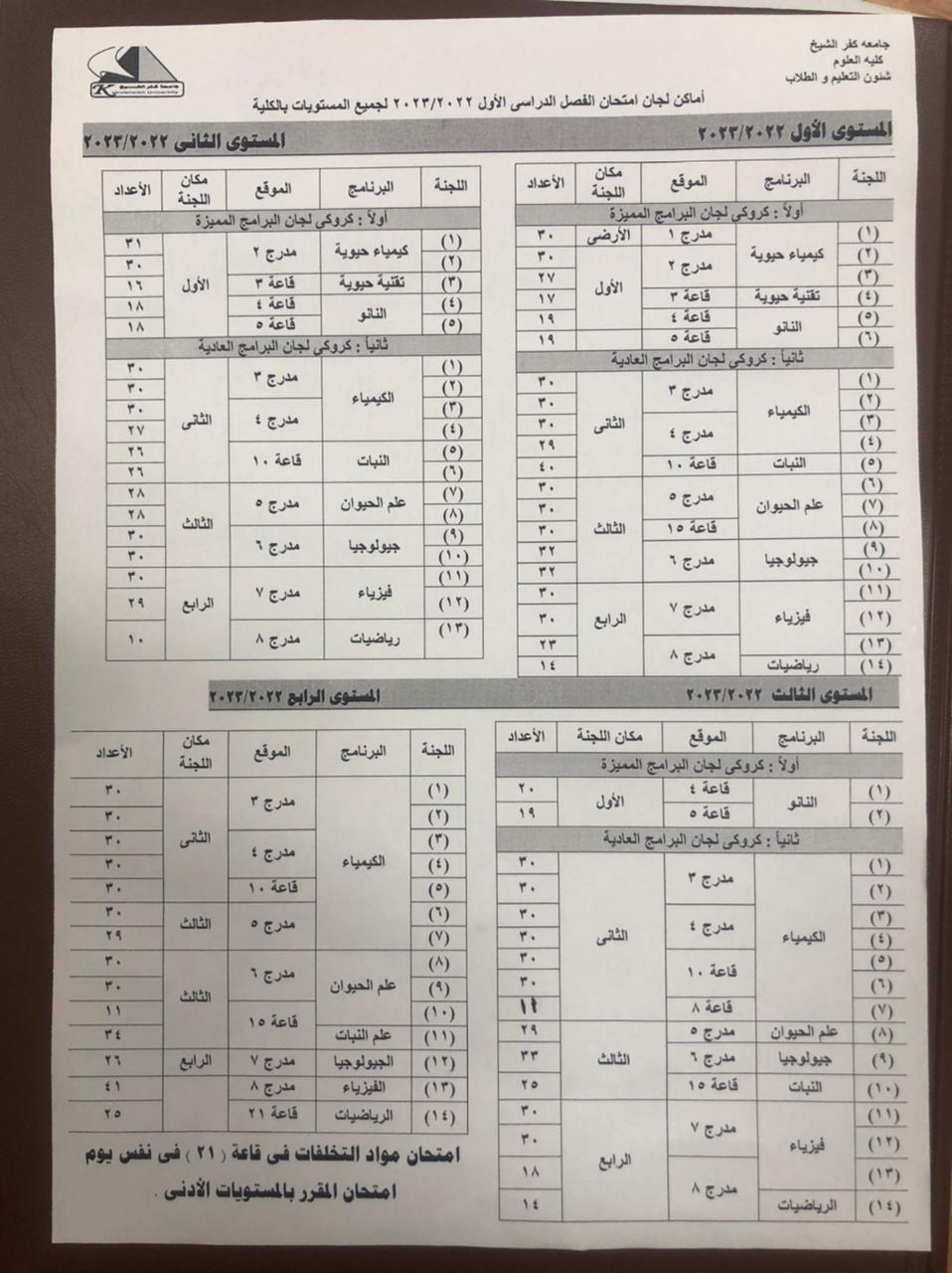 كروكى لجان الامتحانات الفصل الدراسى الاول 2022/2023
