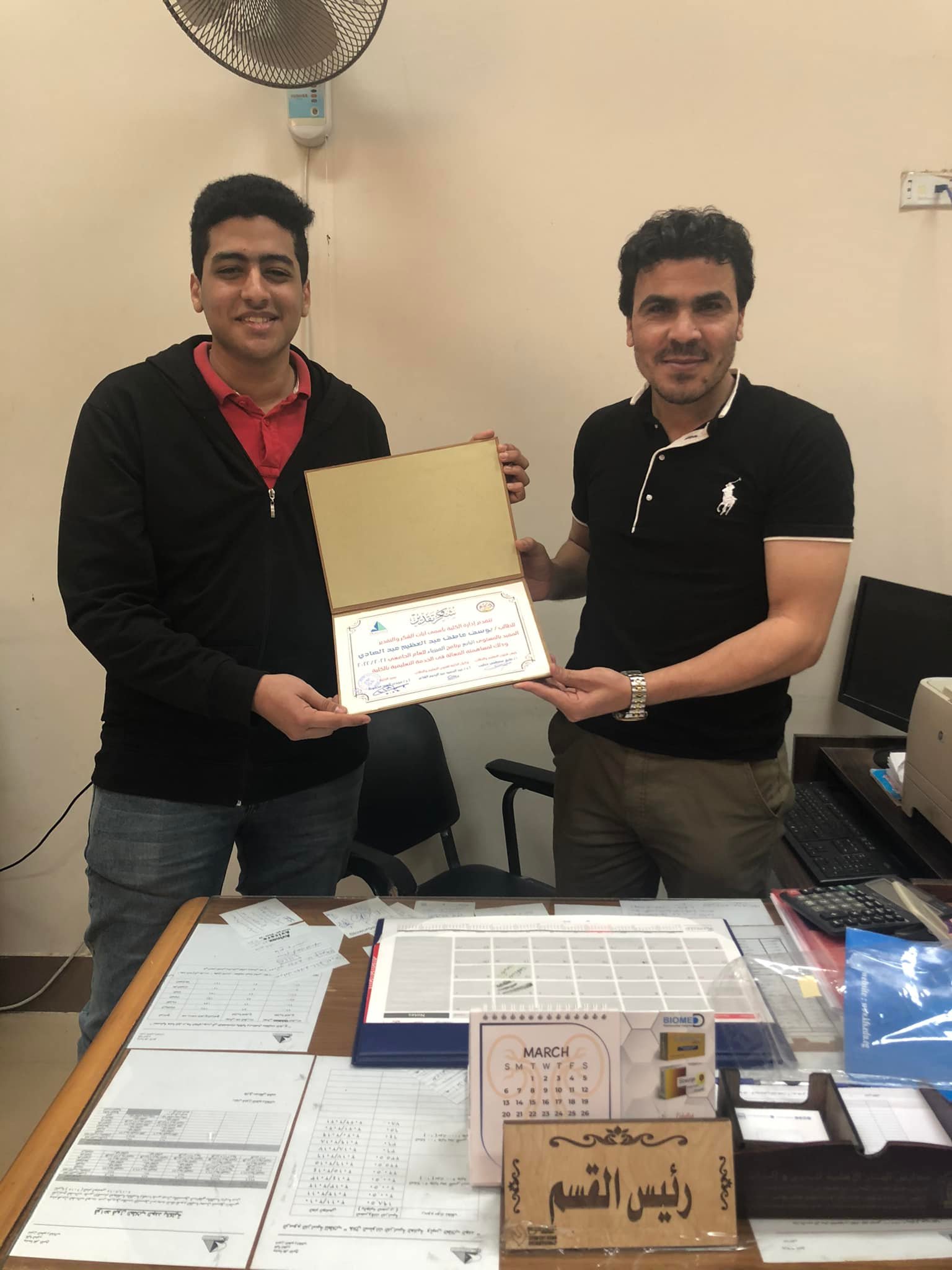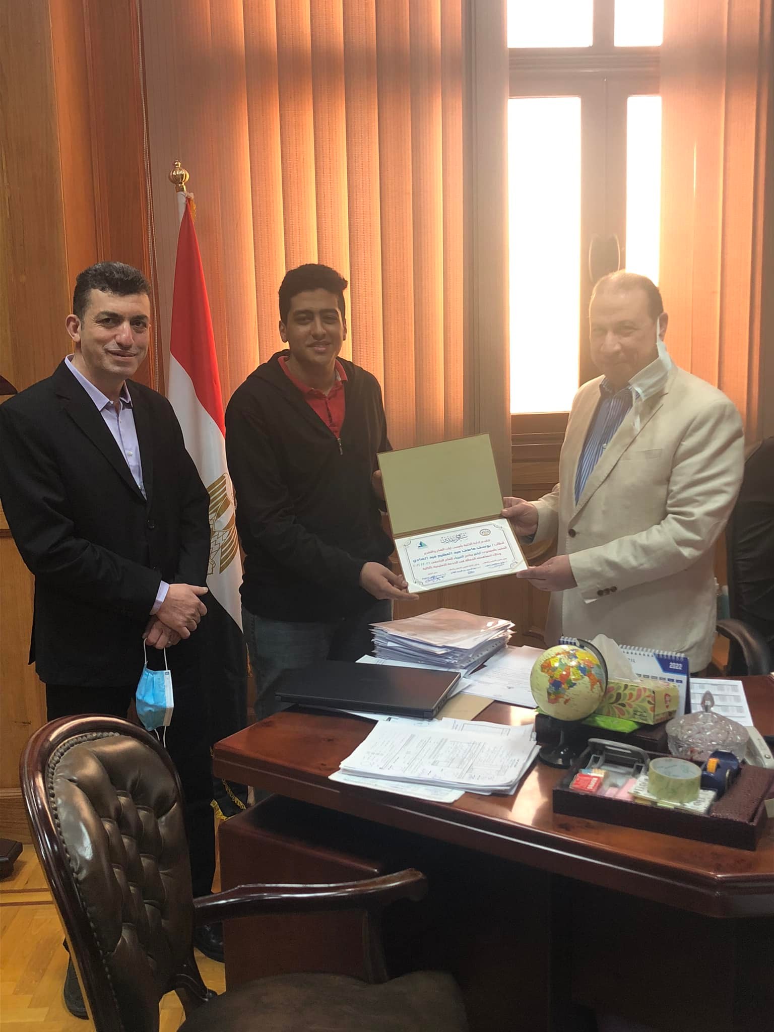 السيد الاستاذ الدكتور /مجدى محفوظ يكرم الطالب /يوسف عاطف عبدالعظيم