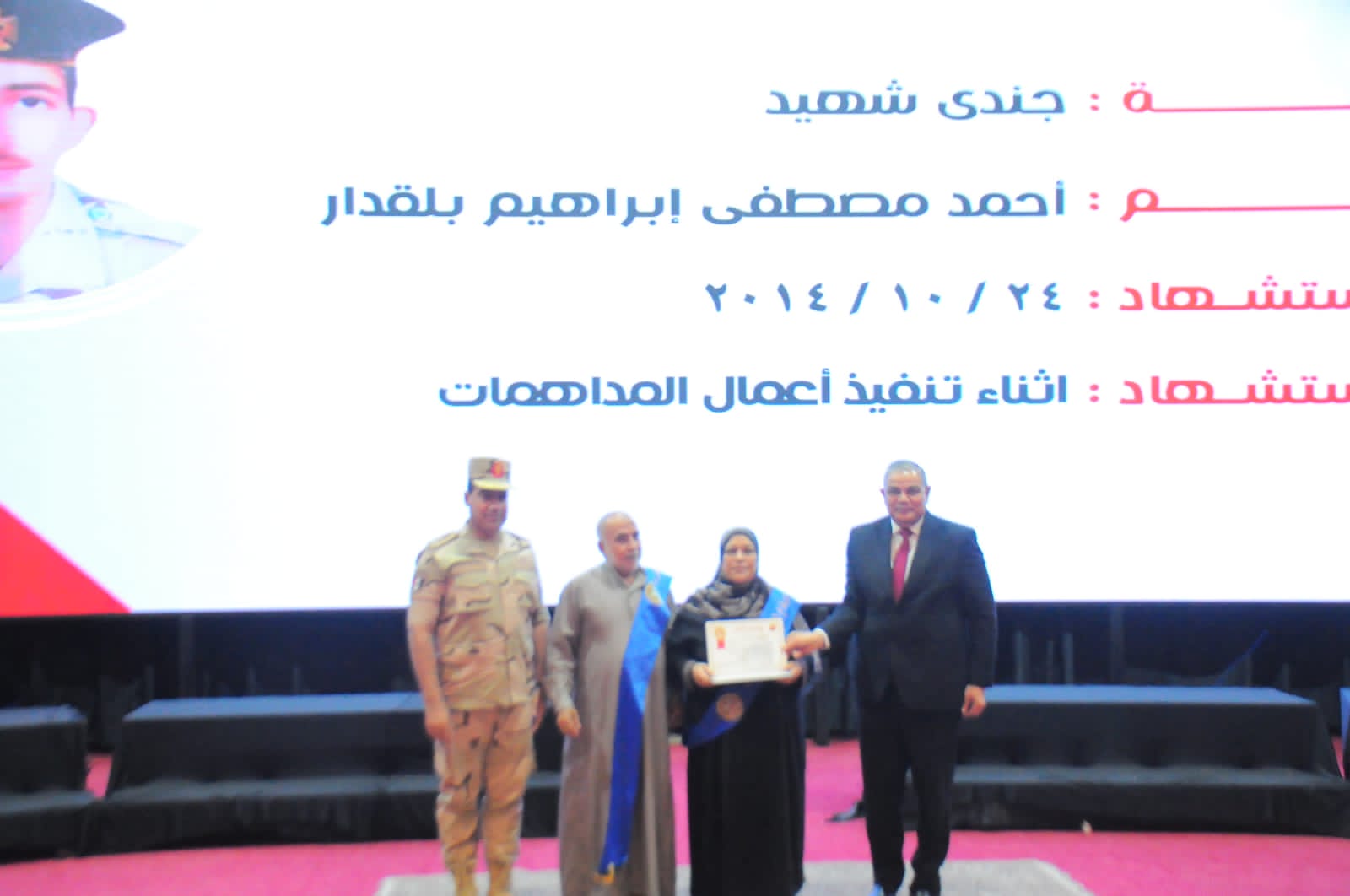 كما شهدت الندوة تكريم عدد من أسر الشهداء وطلاب الكليات المتميزين والمشاركين في تنظيم الحفل والطلاب من ذوي الهمم، كما قام اللواء أركان حرب أسامة عبد الحميد داود قائد قوات الدفاع الشعبي والعسكري والدكتور عبدالرازق دسوقي، بتبادل الدروع التذكارية، وفي الختام وقف الجميع تعظيمًا للسلام الوطني لجمهورية مصر العربية
