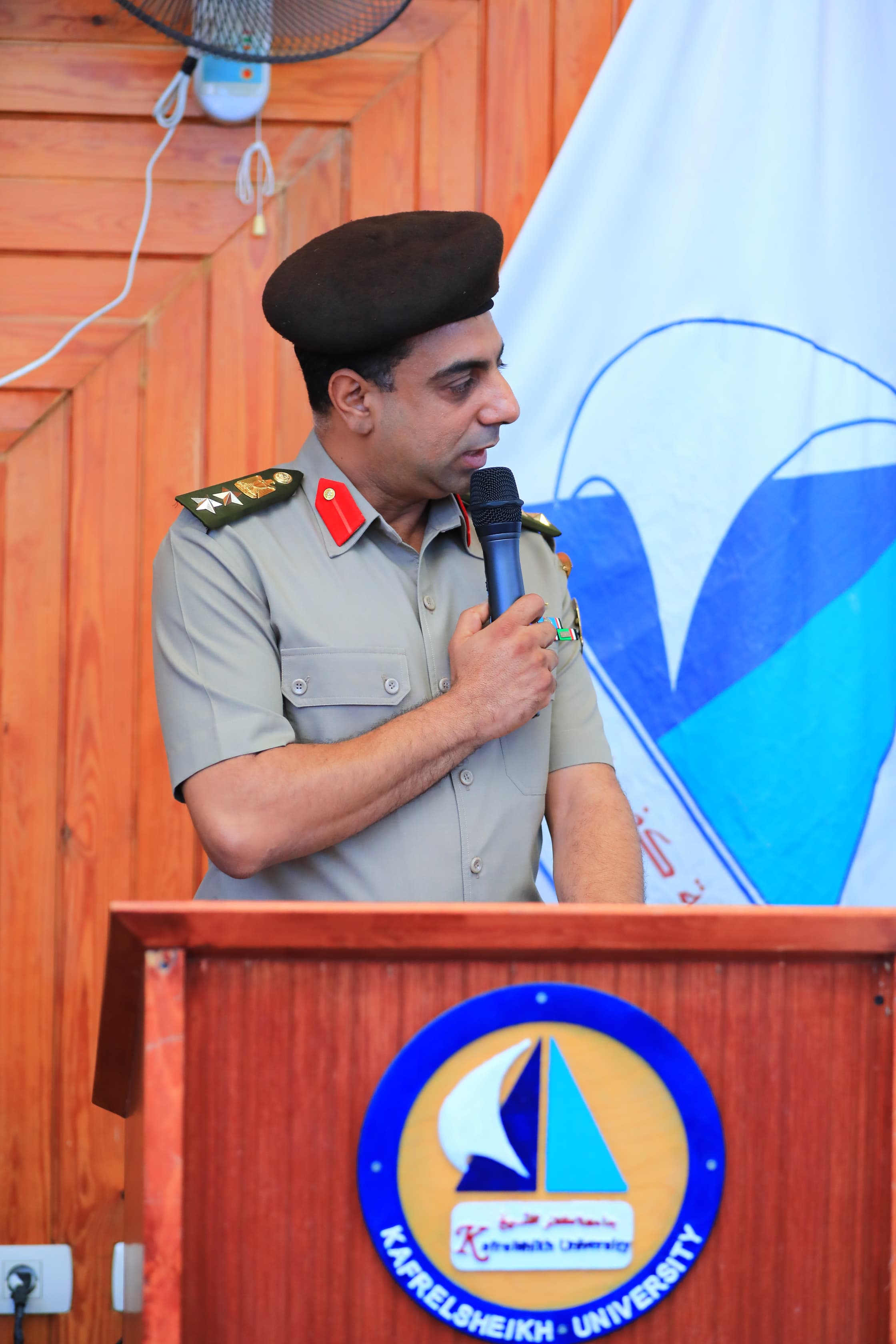 وفي كلمته، وجّه اللواء أركان حرب وائل عبد الحكم العبد تحية تقدير واعتزاز لجامعة كفر الشيخ على اهتمامها بتعزيز الوعي الوطني لدى شبابها، مؤكدًا أن حرب أكتوبر لم تكن مجرد معركة عسكرية، بل كانت ملحمة تاريخية جسدت إرادة أمة بأكملها، أعادت لمصر والعرب كرامتهم وعزتهم، ورسخت مكانة القوات المسلحة كدرعٍ وسيفٍ للأمة.