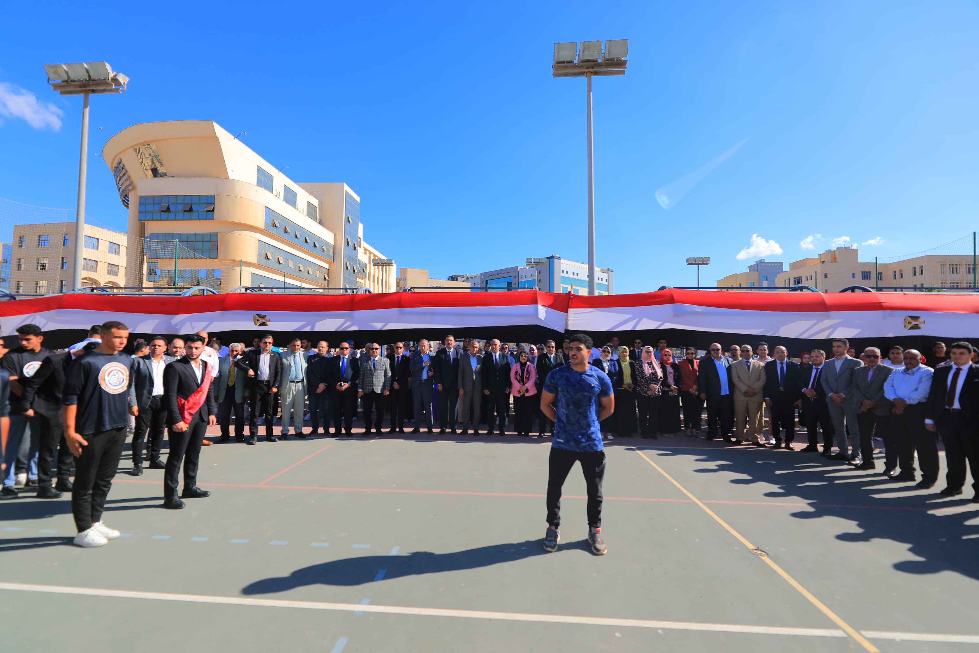 شهد الدكتور إسماعيل إسماعيل ابراهيم، القائم بعمل رئيس الجامعة، اليوم الأحد الموافق 21/9/2026، مراسم تحية العَلَمِ والتي تأتي انطلاقا مع بدء العام الجامعي الجديد 2025/2026، بحضور الدكتور أماني شاكر نائب رئيس الجامعة لشئون خدمة المجتمع وتنمية البيئة، والدكتور على صبري أمين عام الجامعة، والسادة عمداء ووكلاء كليات الجامعة وأعضاء هيئة التدريس، والهيئة المعاونة، وجمع من طلاب الجامعة، بمشاركة أسرة طلاب من أجل مصر.