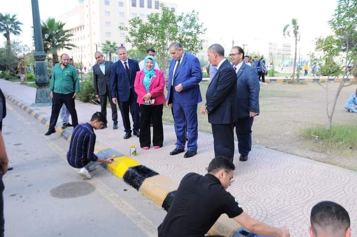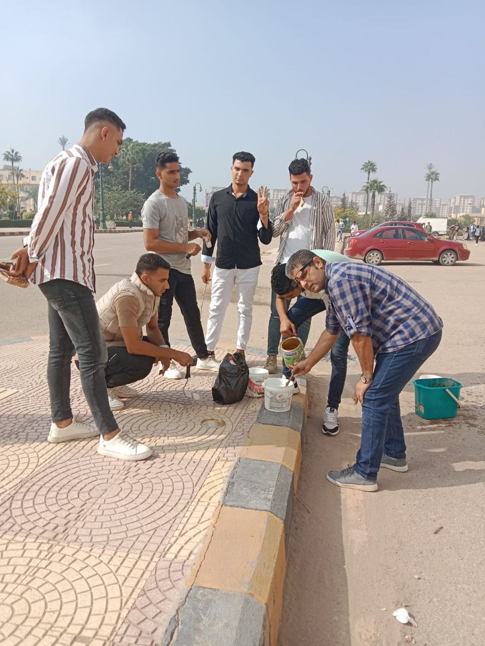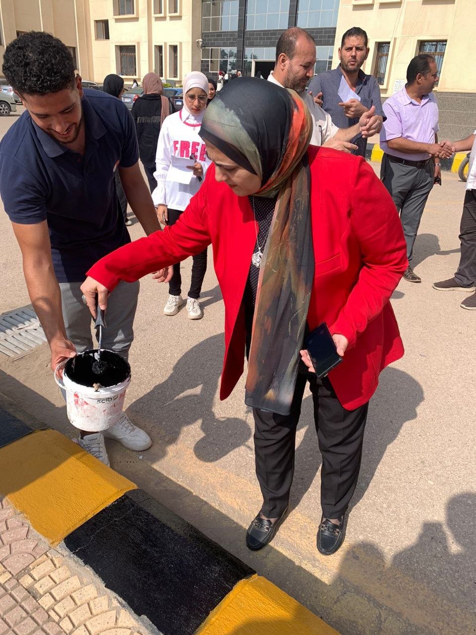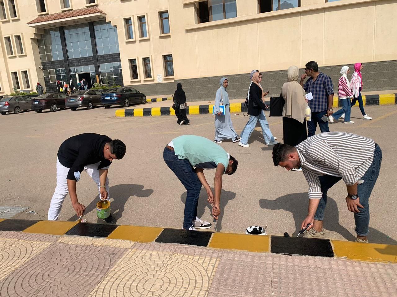 في إطار استمرار فاعليات الأسبوع البيئي الثاني كلية تربية النوعية ترمم الأرصفة