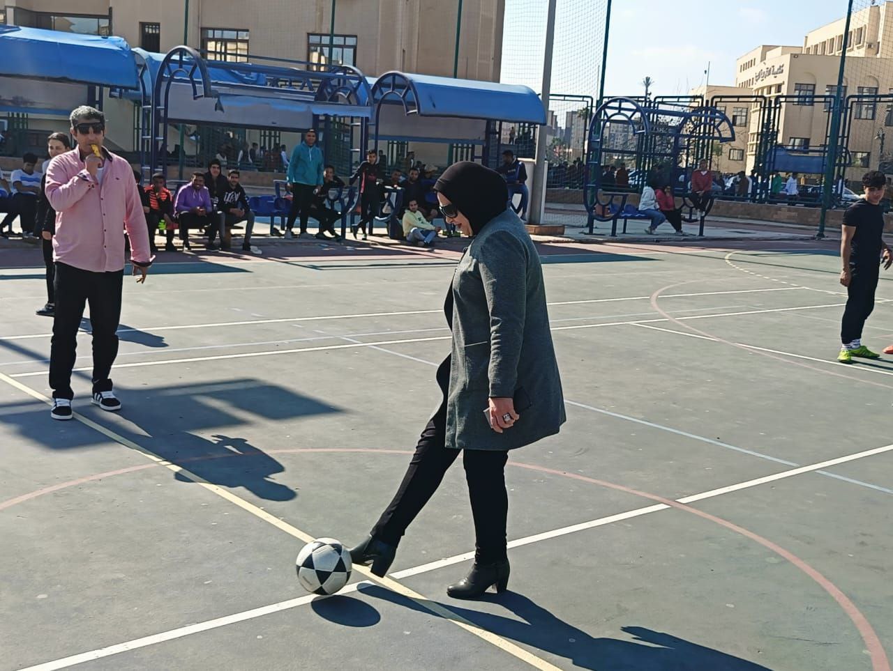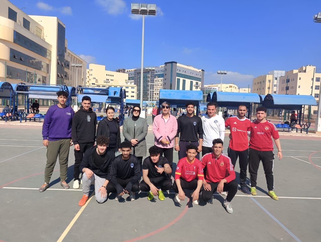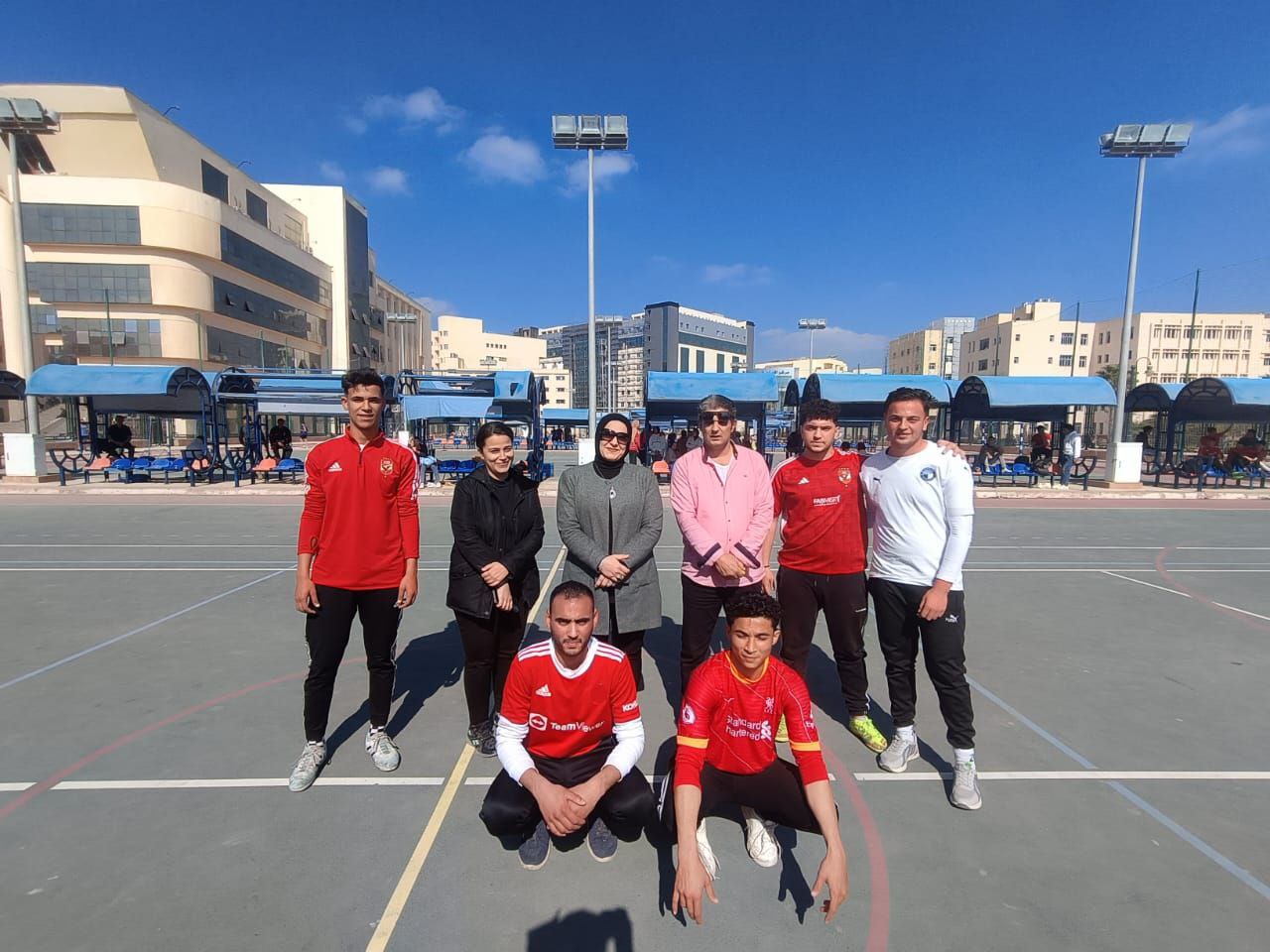 أقيم اليوم اولى مباريات دورى كأس العميد لكلية التربية النوعية بالملعب الخماسي لكلية التربية الرياضية بحضور معالي الأستاذ الدكتور نجلاء الأشرف لتشجيع الشباب المشاركين وتعزيز دور الرياضة والأنشطة الطلابية بالكلية حيث أشادت سيادتها بمدى استجابة ومشاركة الطلاب في كافة الأنشطة الطلابية بمختلف مجالاتها