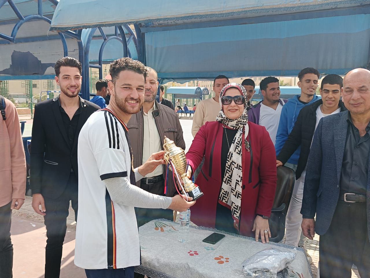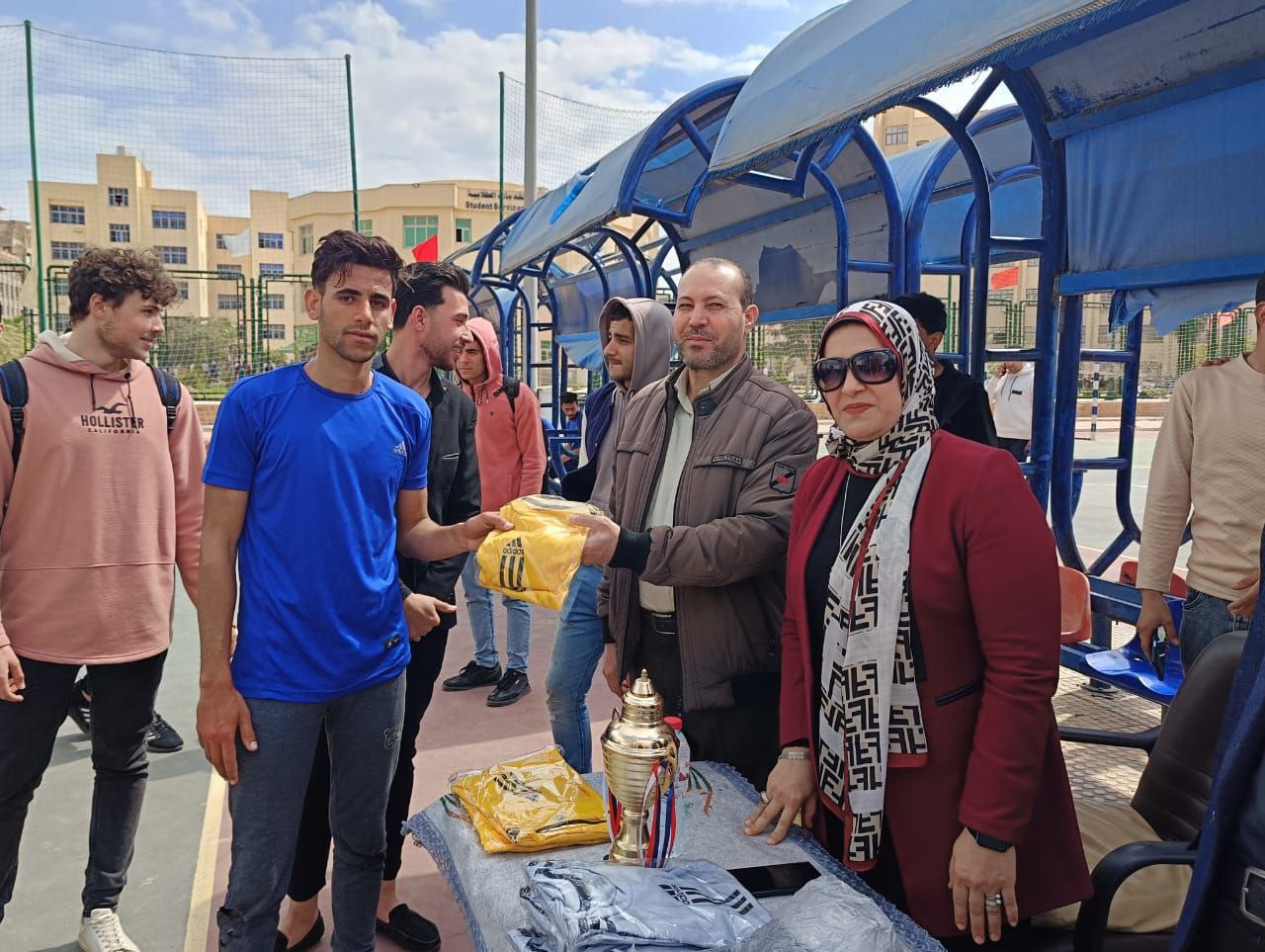 تم يوم الإربعاء الموافق 6مارس للعام الجامعي 2023 / 2024 م إنتهاء فاعليات كأس العميد للكلية بجو من الطاقة والنشاط في الملعب الخماسي لكلية التربية الرياضية وذلك بحضور الأستاذ الدكتور نجلاء حسني الأشرف عميد الكلية وتسليم الجواز للفائزين وأعربت عن سعادتها بالتنظيم وافادت سيادتها أن الرياضة والأنشطة الطلابية تساعد علي تكوين بنية قوية متمنية لهم دوام التوفيق
