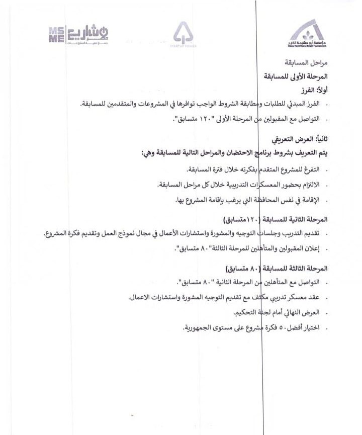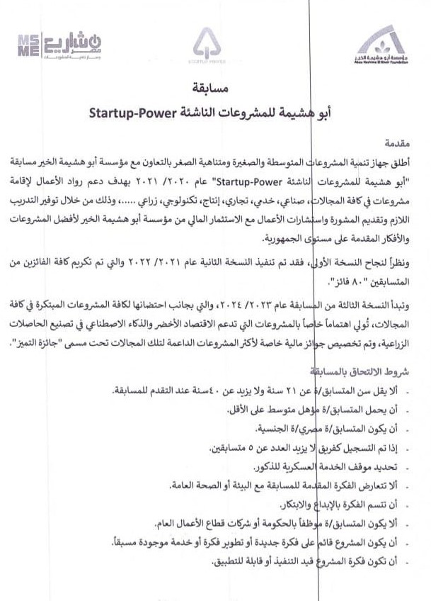 مسابقة أبو هشيمة للمشروعــات النـاشئة Startup-Power