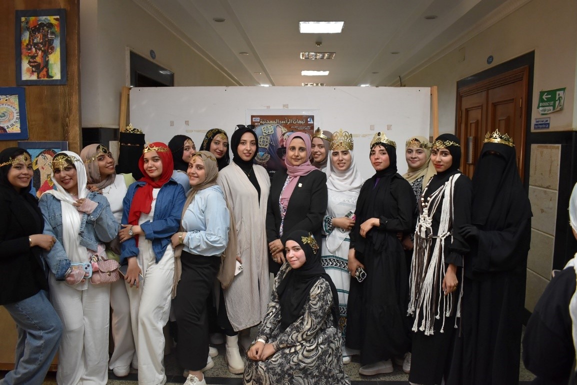 معالى رئيس الجامعة يفتتح معرض تيجان الرأس المعدنية لقسم التربية الفنية