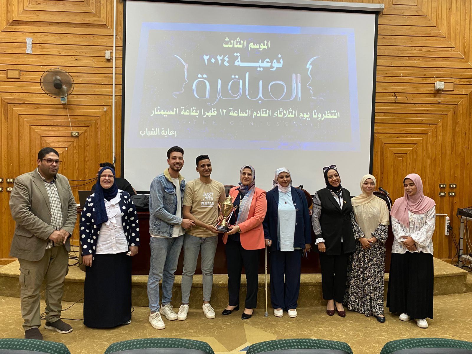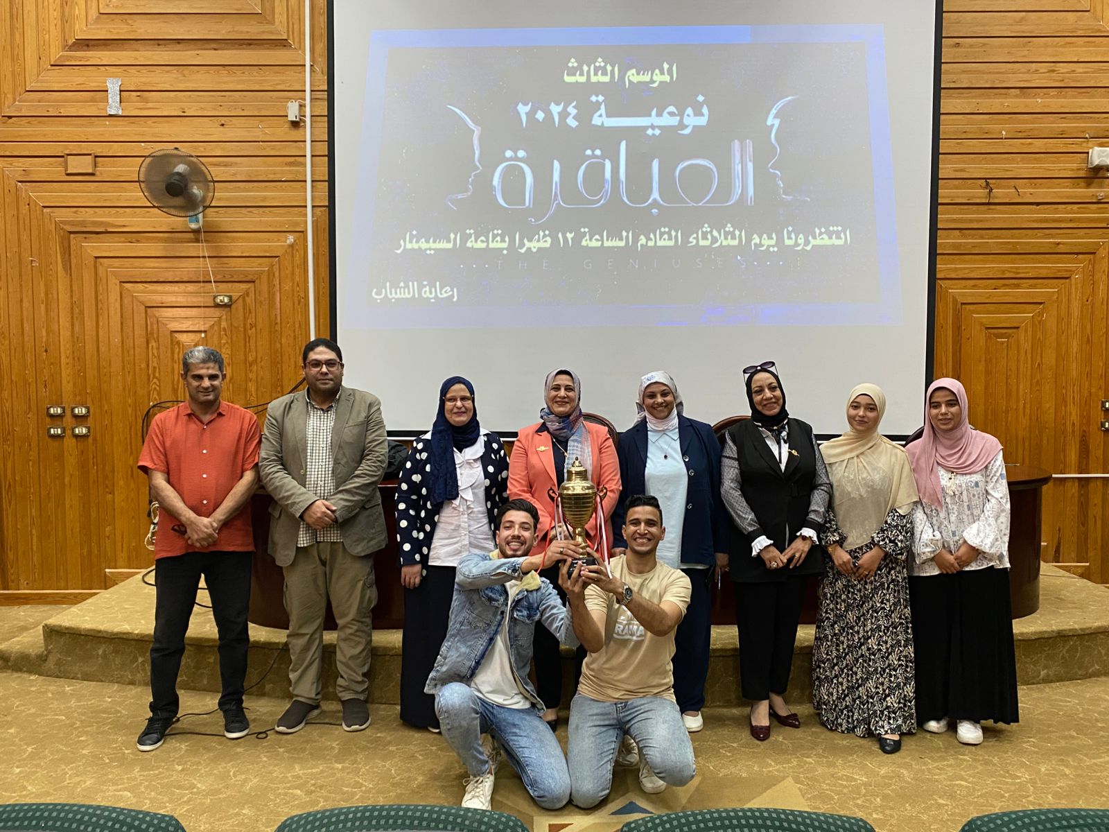 انعقد الأمس الثلاثاء الموافق 12 نوفمبر 2024 م منافسة العباقرة نوعية 2024 حيث صارت المنافسة فى جو عالى من المرح والحب بين الجميع والروح العالية والتواجد الكبير للطلاب للتشيجع كما تواجدت منافسة شديدة على بطل هذا العام، ولكن ظل تصميم فريق تكنولوجيا التعليم حتى الرمق الاخير ليكون بطل هذا العام الذي تكون من الطالب أحمد محمود منصور والطالب محمد خميس خميس و الطالبة رفيده أحمد عبد العليم والطالبة لقاء رشدي عبد الله وفى الختام قامت الأستاذ الدكتور نجلاء حسنى الأشرف بتقديم الشكر والتقدير لسادة القائمين على تنظيم المنافسة كما كرمت سيادتها الفرق الفائزة ونوهت عن وجود العديد من المنافسات العلمية والترفيهية القادمة وشجعت الطلاب على المشاركة وتمنت للجميع دوام التوفيق النجاح