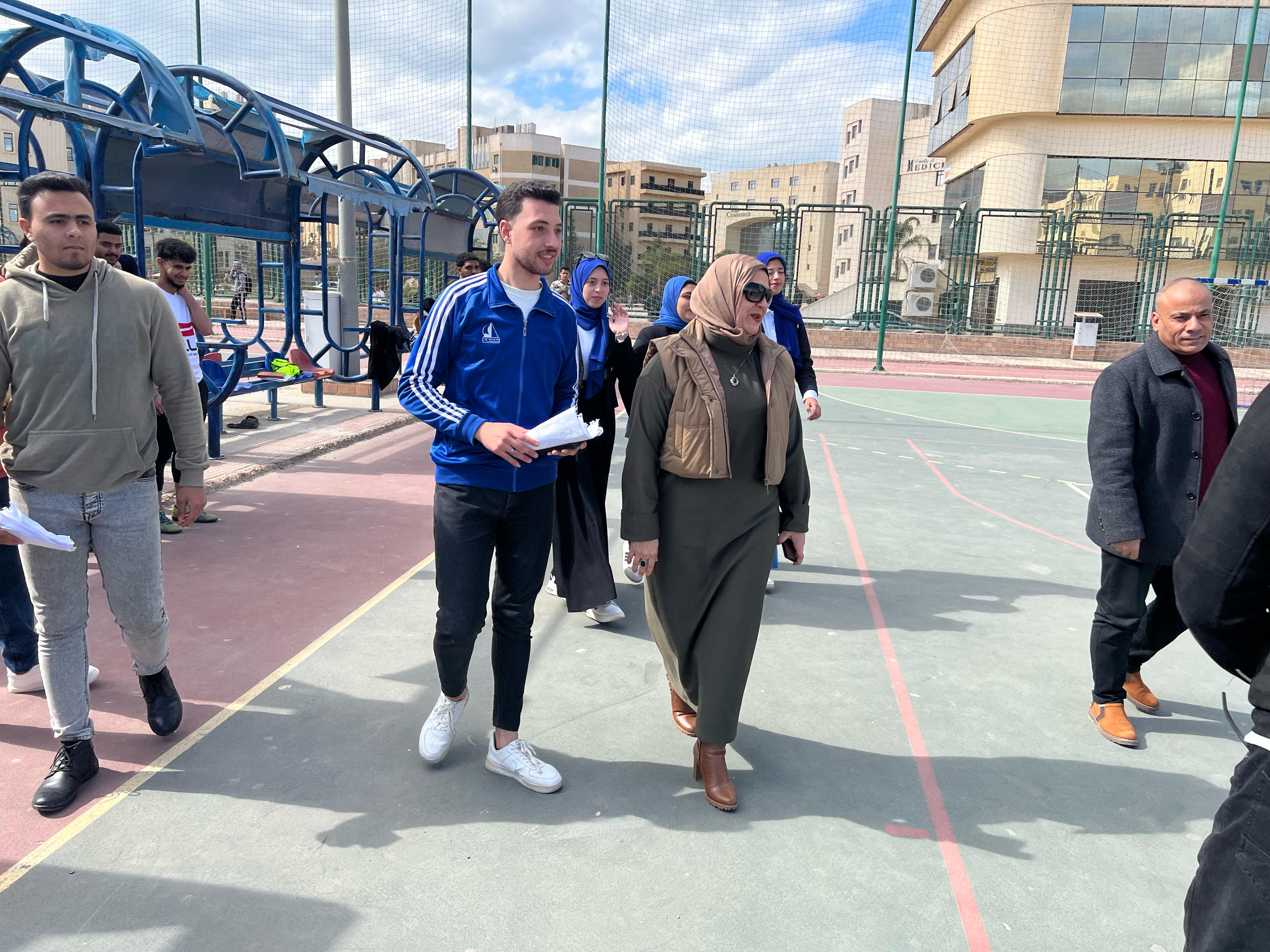 أقيم اليوم اولى مباريات دورى كأس العميد لكلية التربية النوعية بالملعب الخماسي لكلية التربية الرياضية بحضور معالي الأستاذ الدكتور نجلاء الأشرف لتشجيع الشباب المشاركين وتعزيز دور الرياضة والأنشطة الطلابية بالكلية حيث أشادت سيادتها بمدى استجابة ومشاركة الطلاب في كافة الأنشطة الطلابية بمختلف مجالاتها