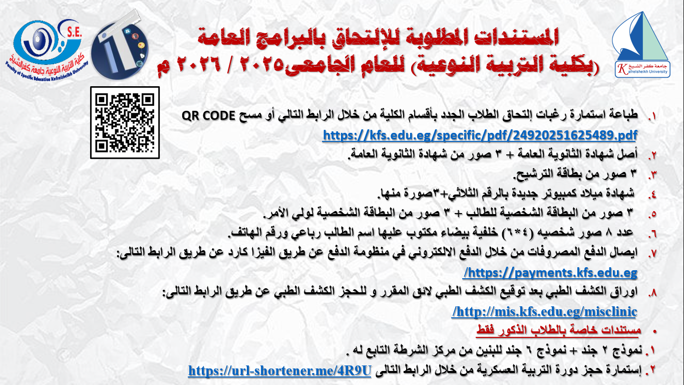 تعلن الكلية عن استقبال طلاب الثانوية العامة المرشحين للالتحاق بها بكافة المراحل.....