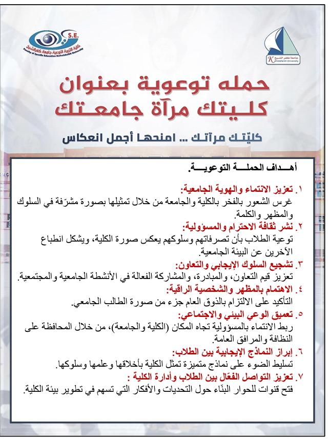 أطلقت كلية التربية النوعية بجامعة كفر الشيخ حملة توعوية تحت عنوان"كليتك مرآة جامعتك. امنحها أجمل انعكاس"