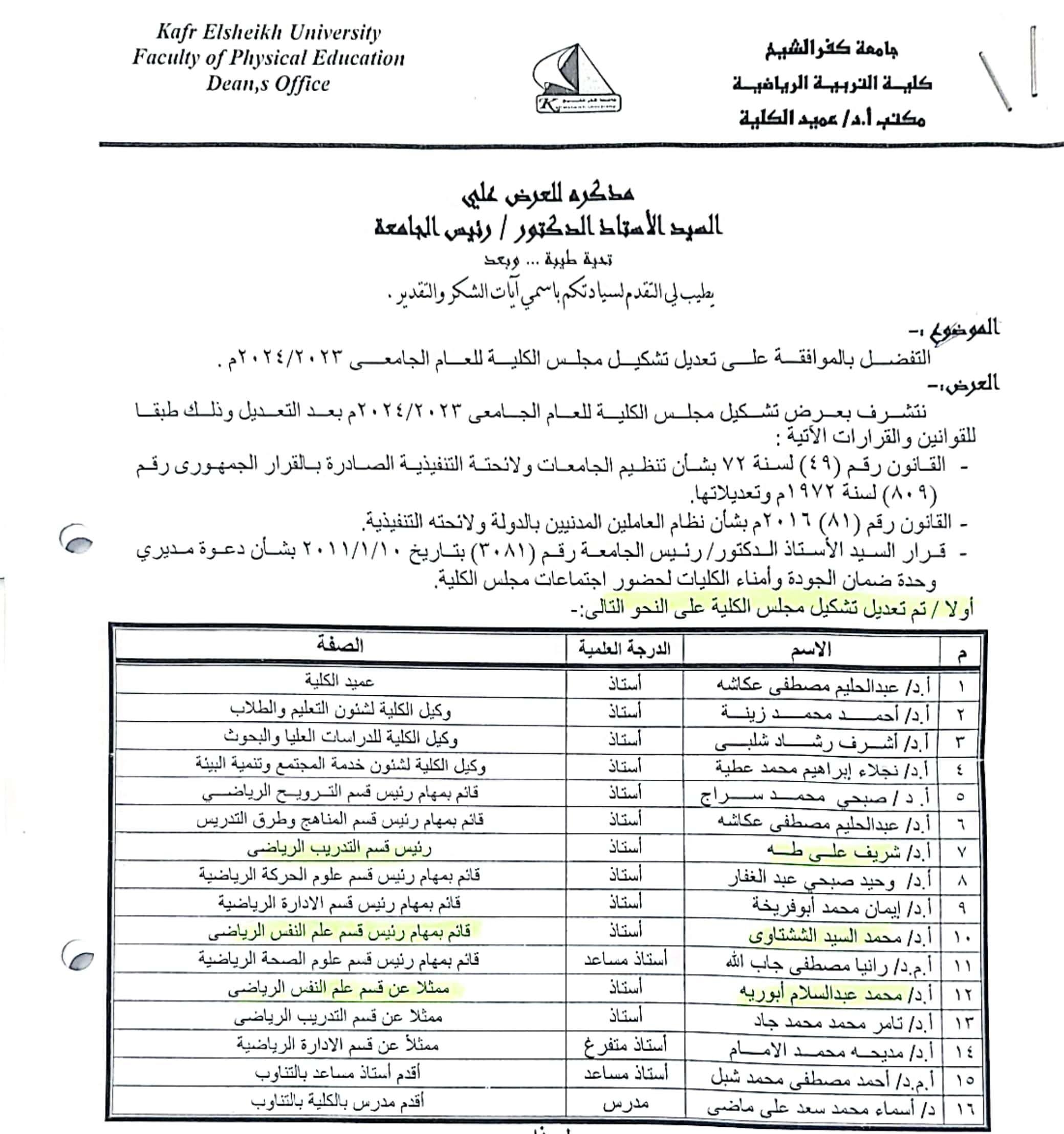 تشكيل مجلس الكلية للعام الجامعي 2023-2024م