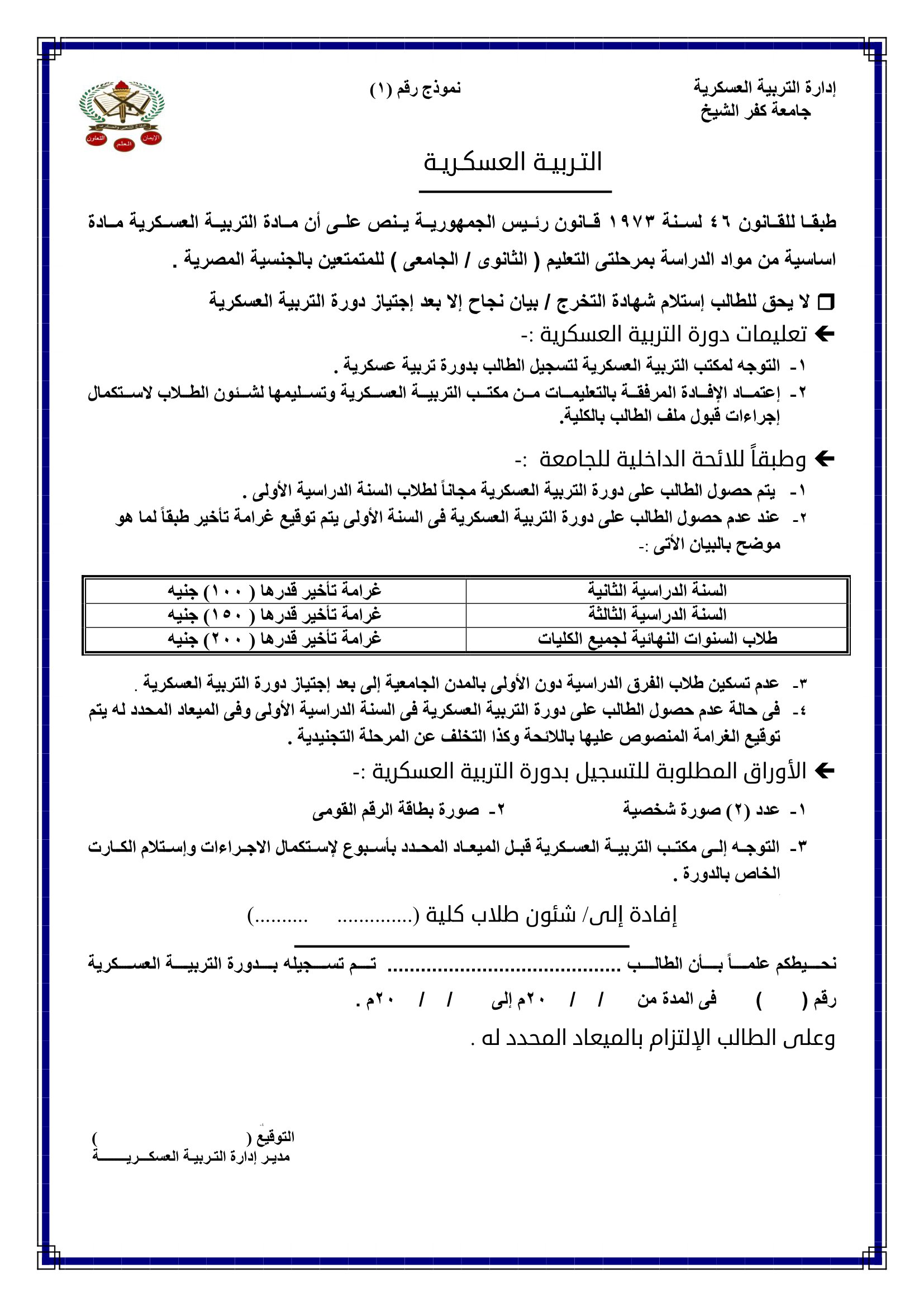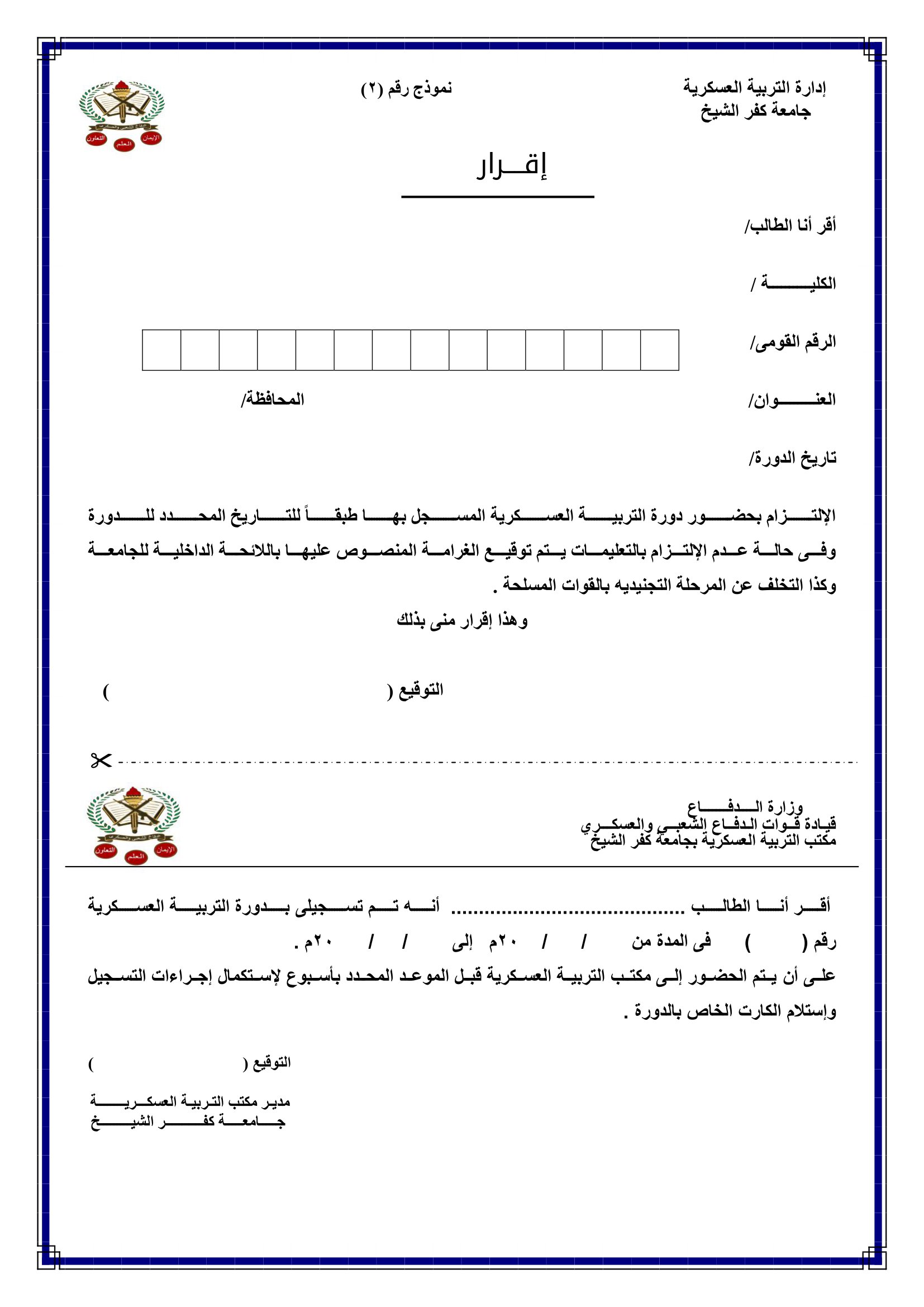 نموذج التسجيل بالتربية العسكرية الملحق بملف تقديم الكليات