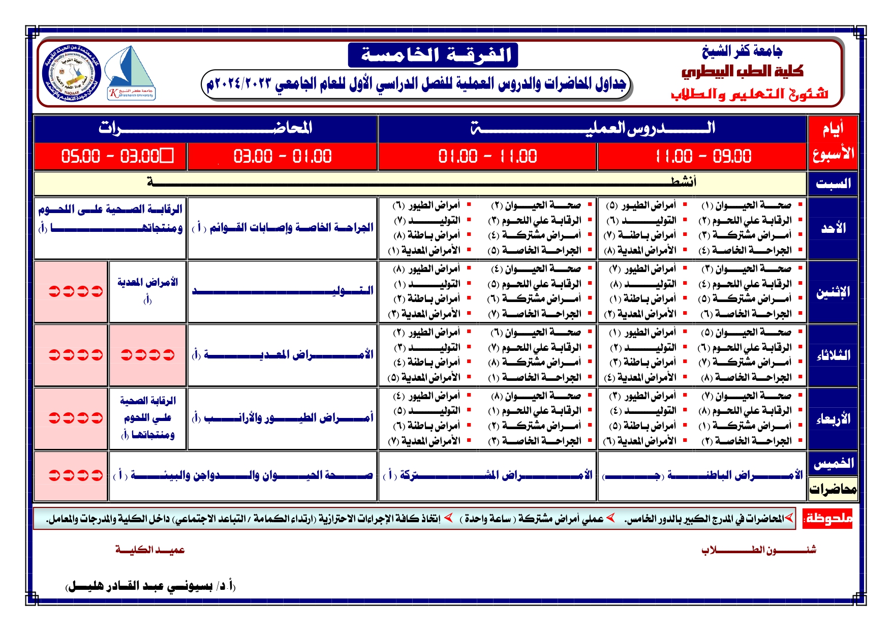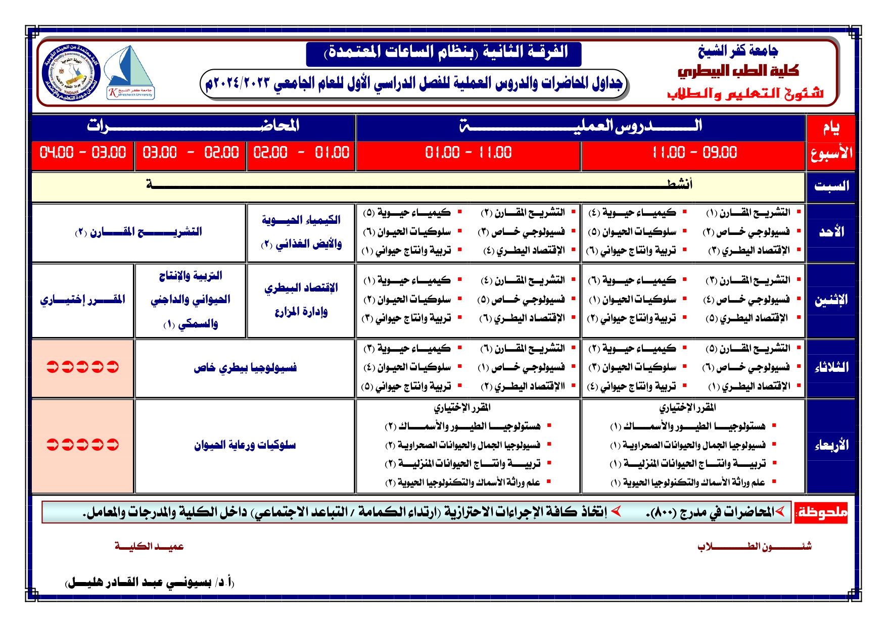 جدول محاضرات الفصا الدراسى الاول 2023/2024
