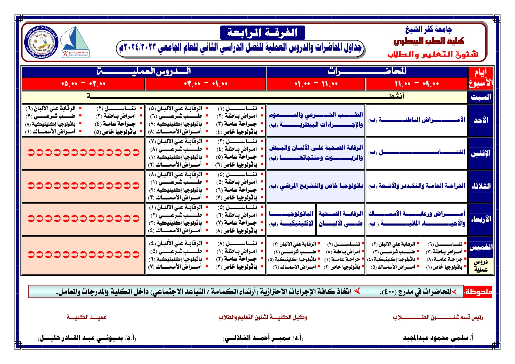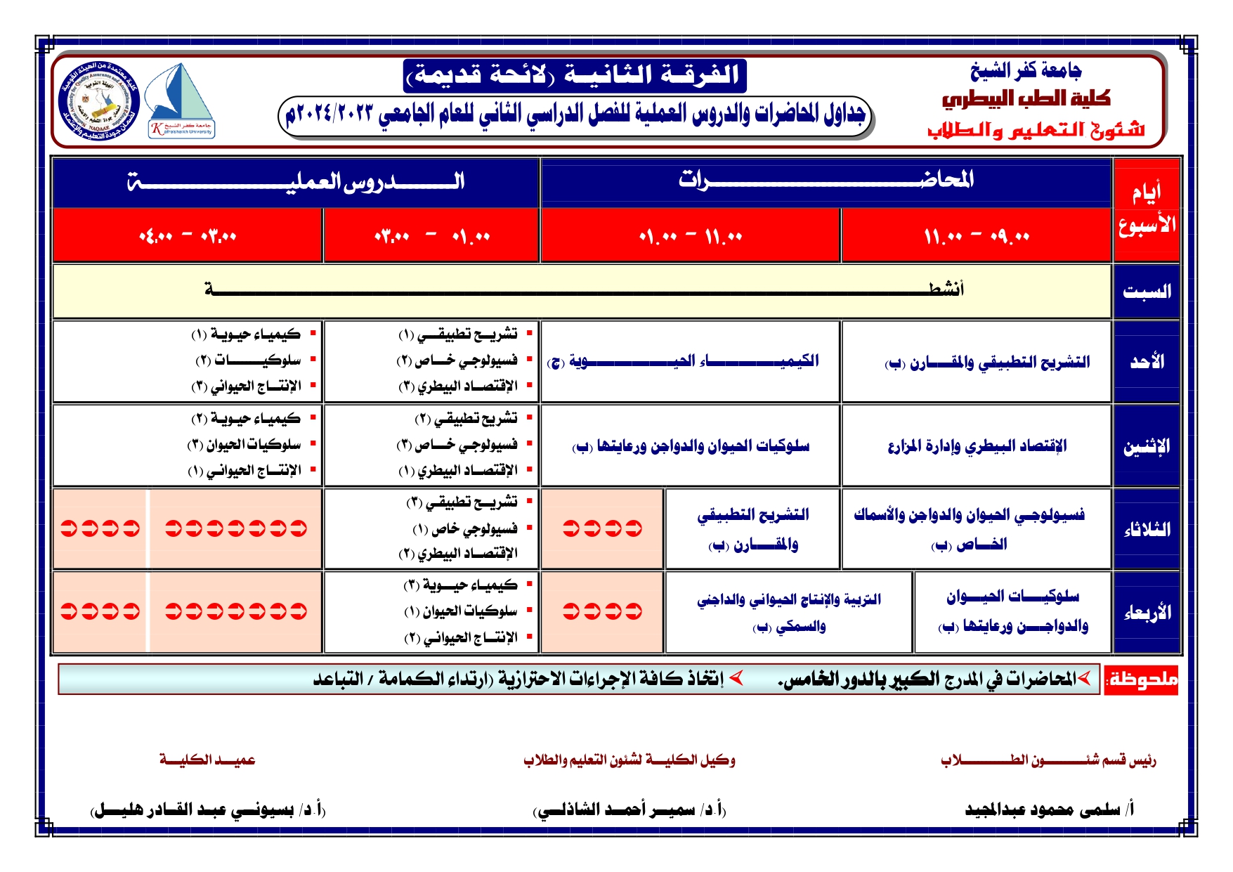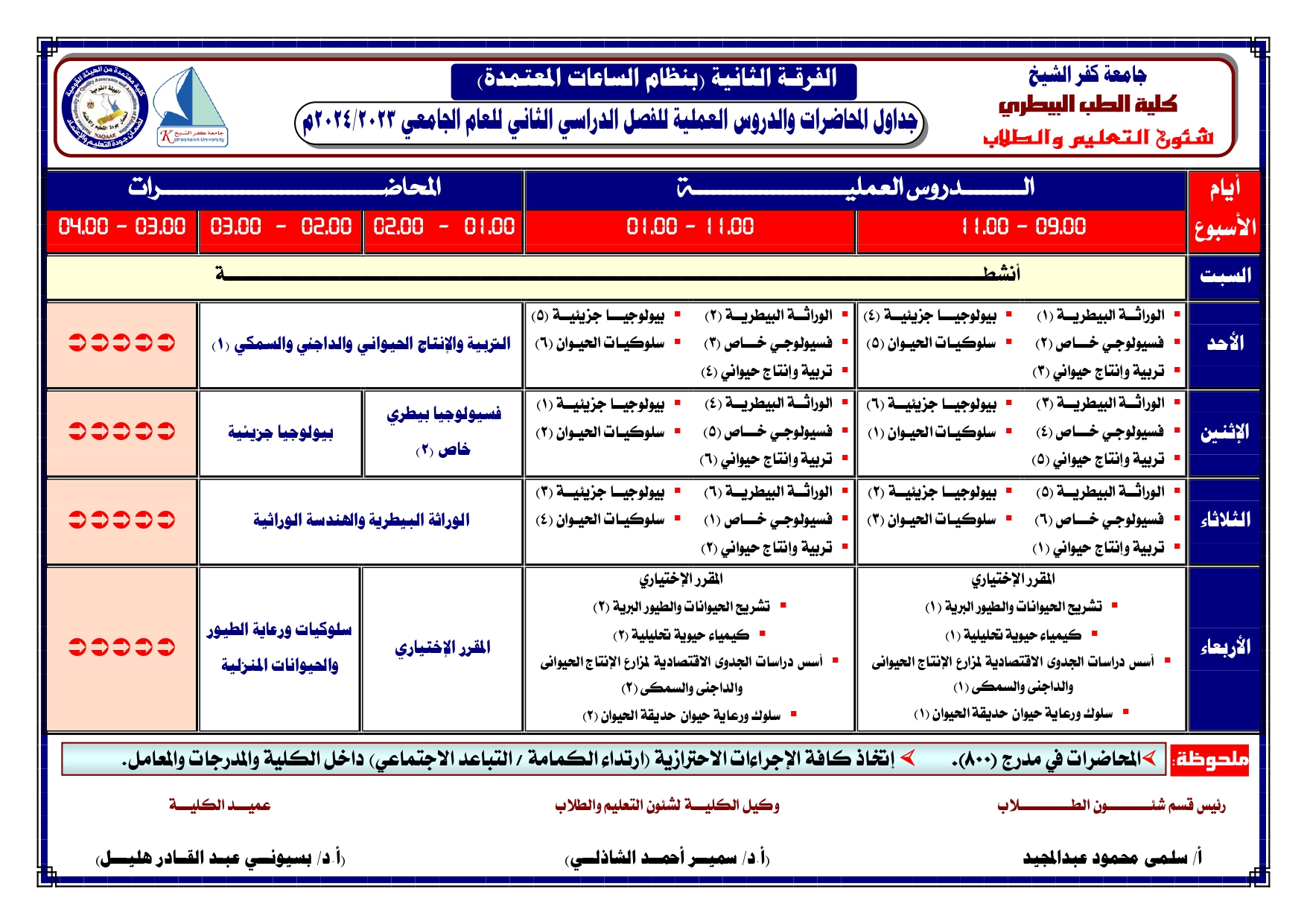 جـداول المحـاضرات الفصل الدراسى الثانى 2024