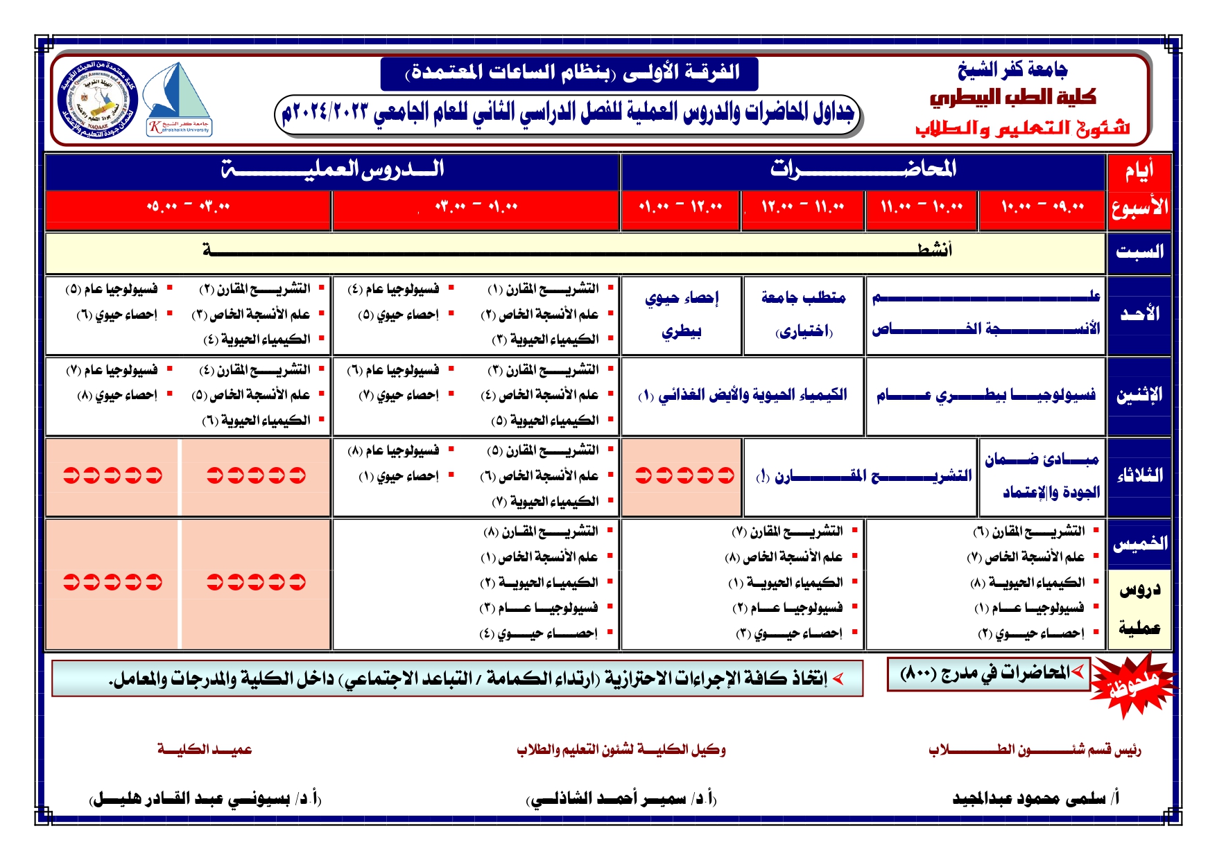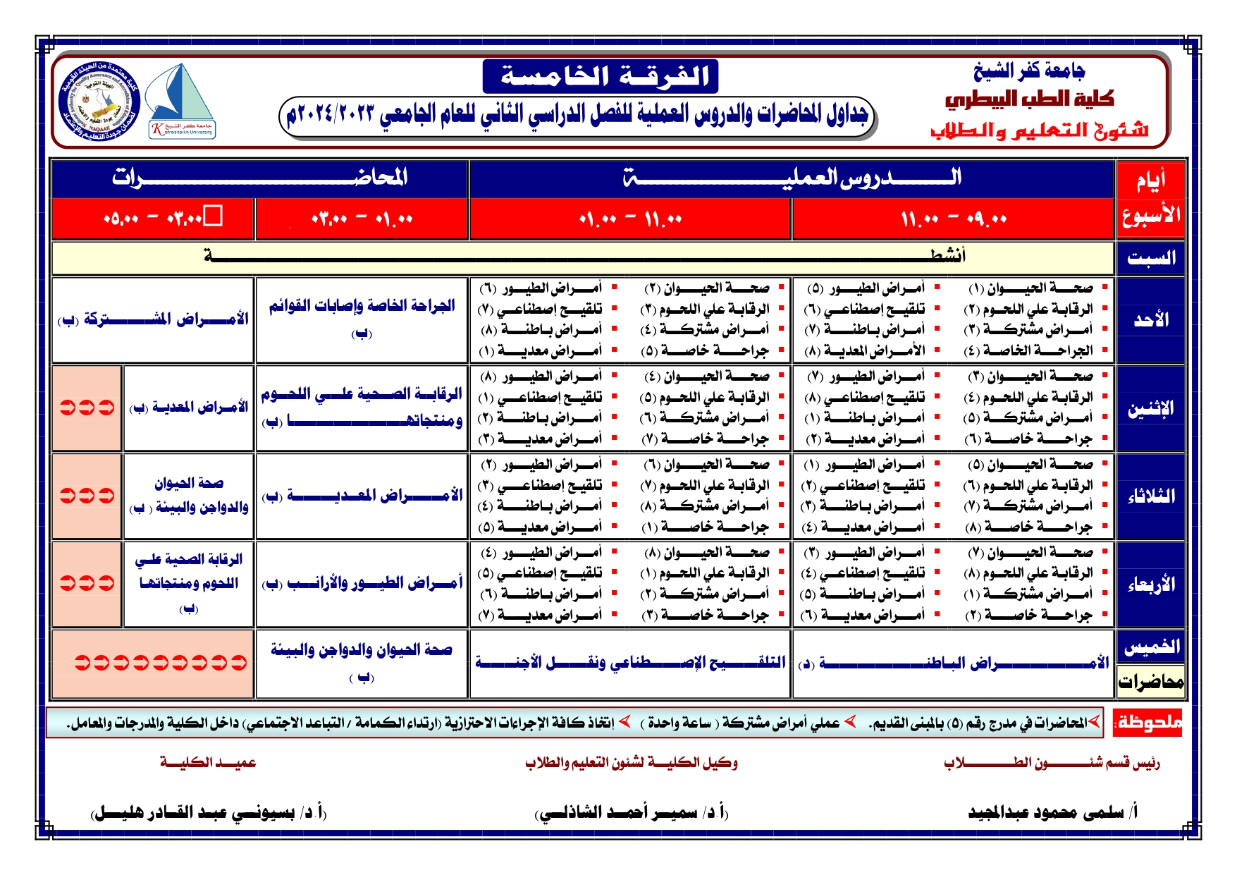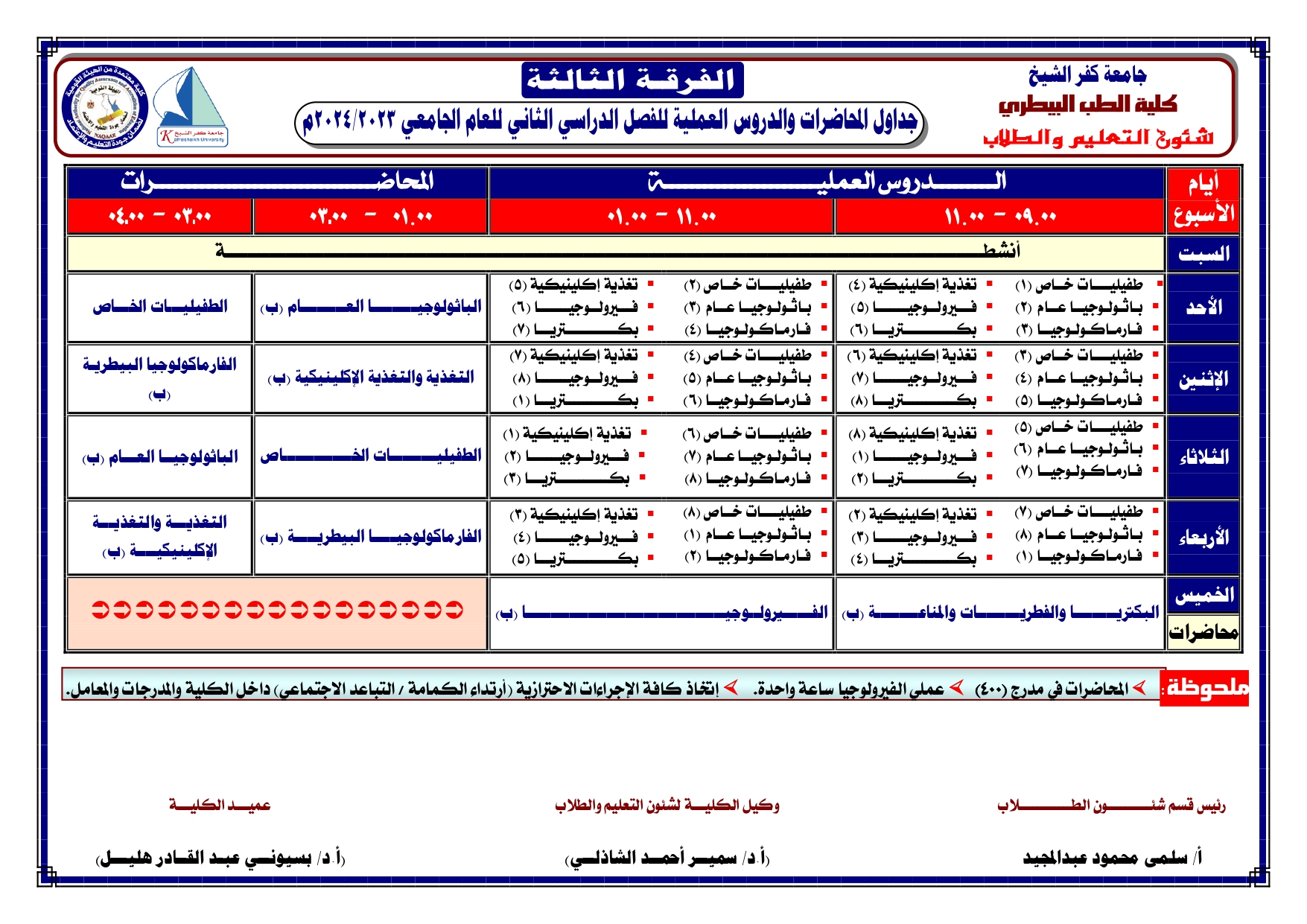 جـداول المحـاضرات الفصل الدراسى الثانى 2024