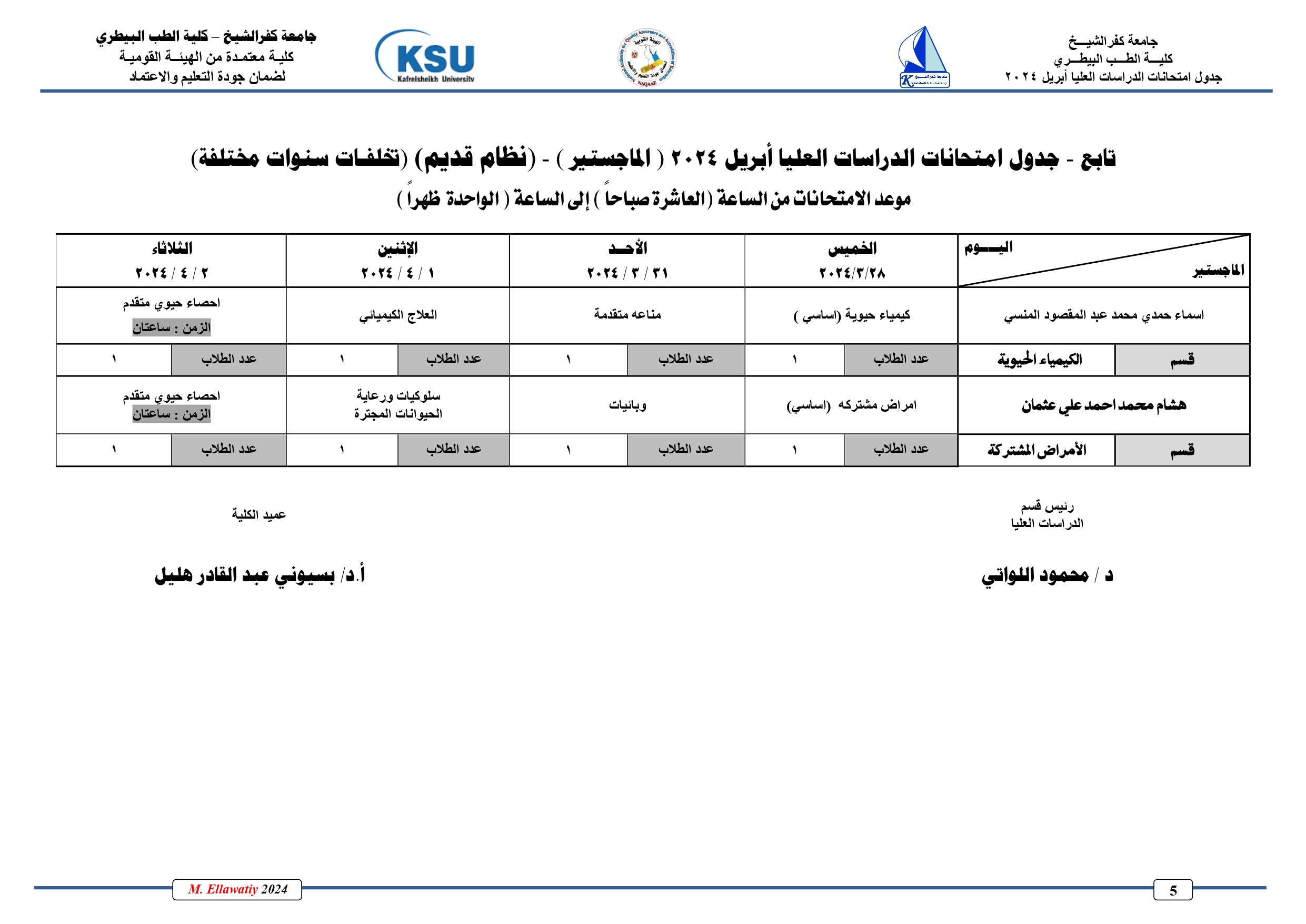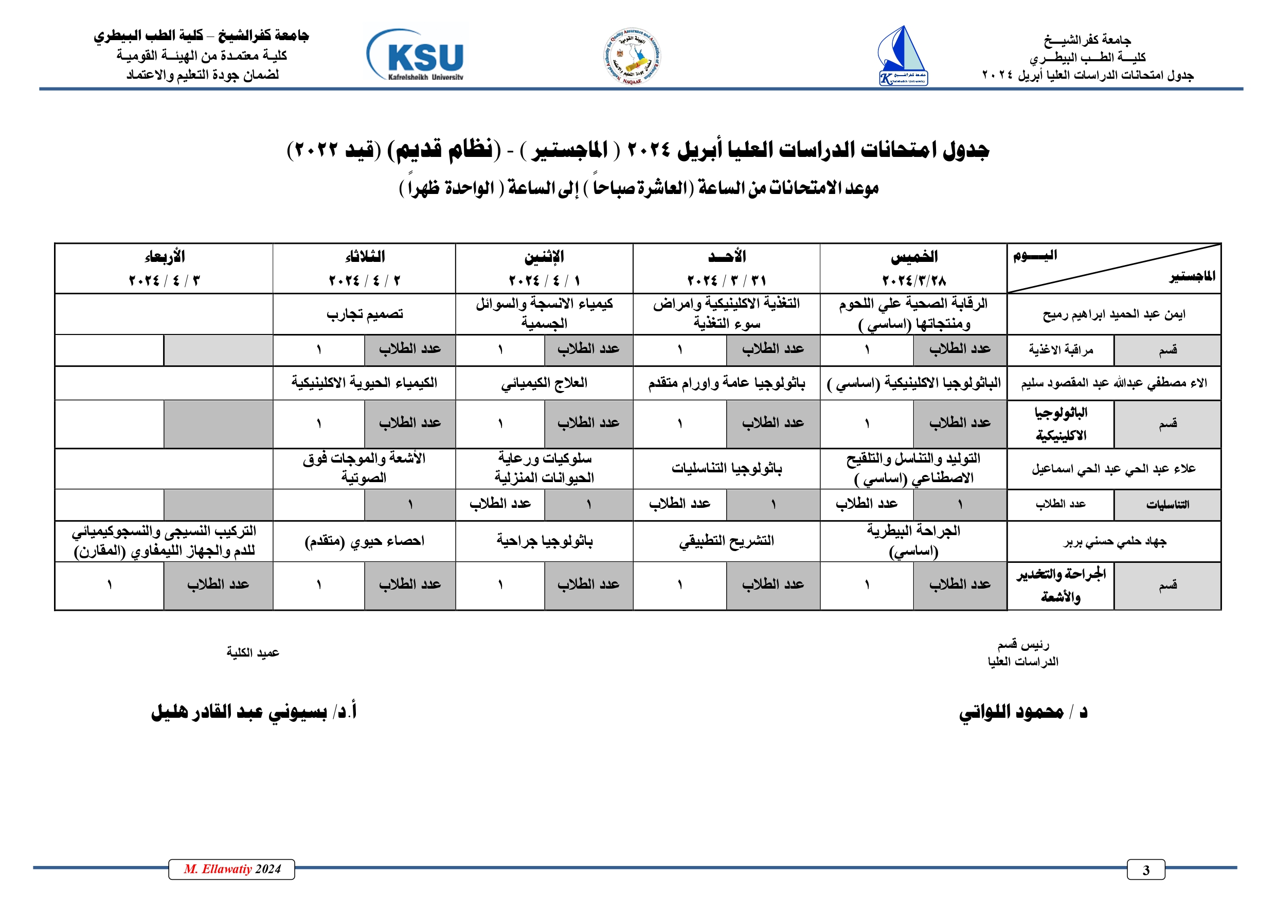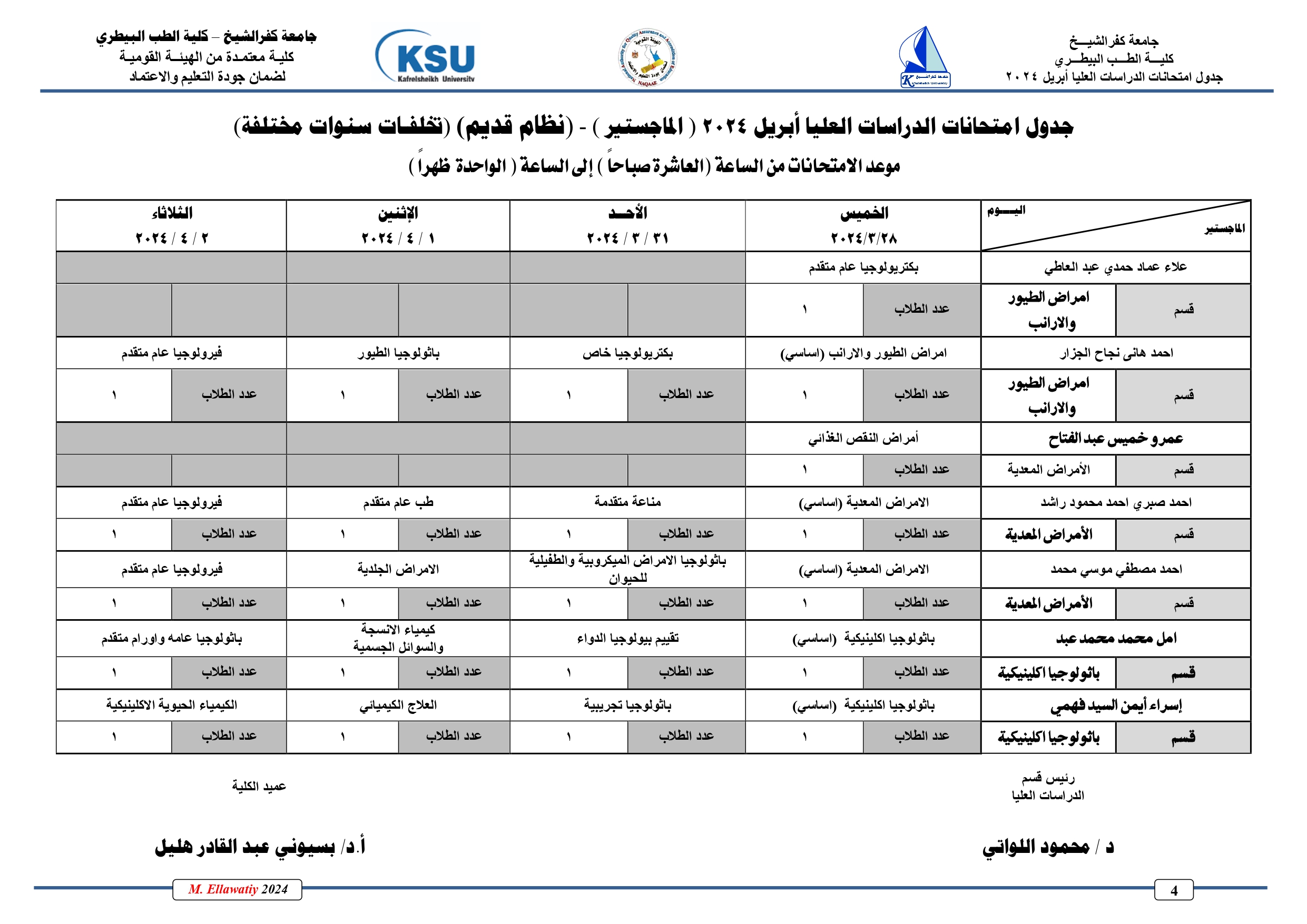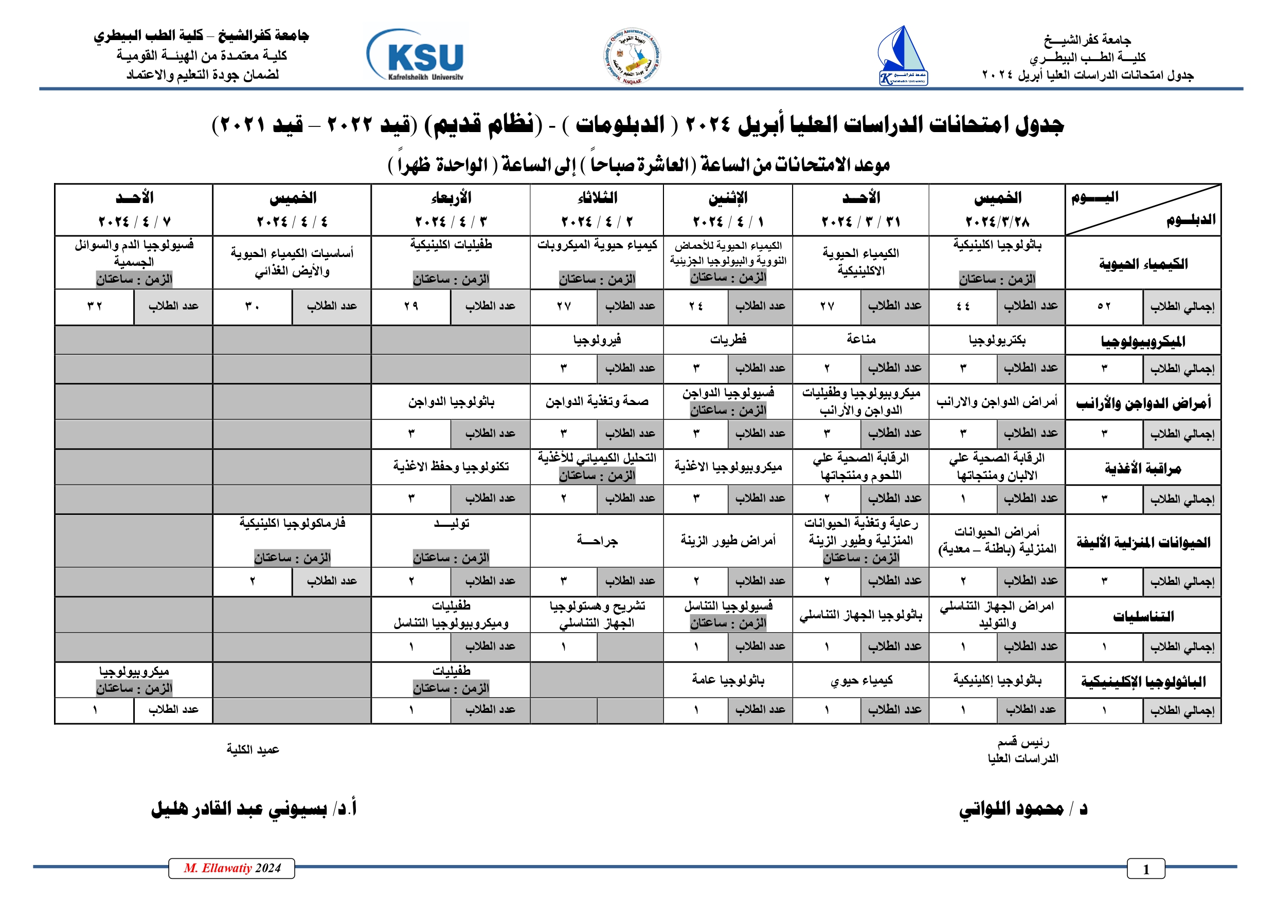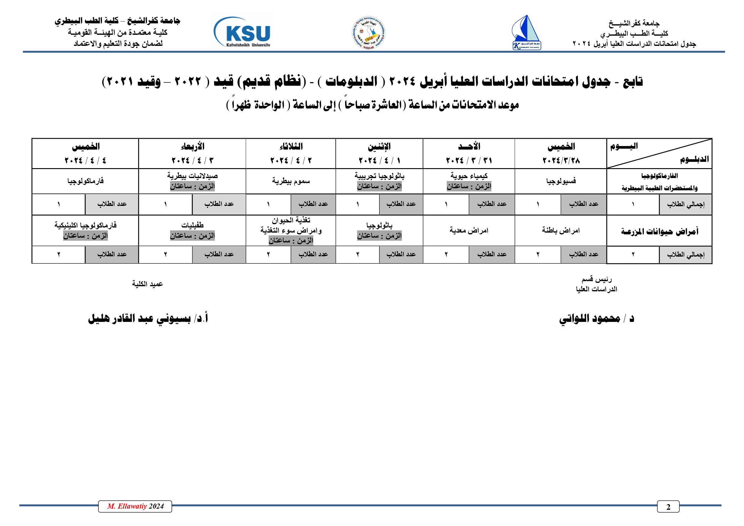 جدول امتحانات الدراسات العليا دور ابريل دبلومات( نظام قدـيم)