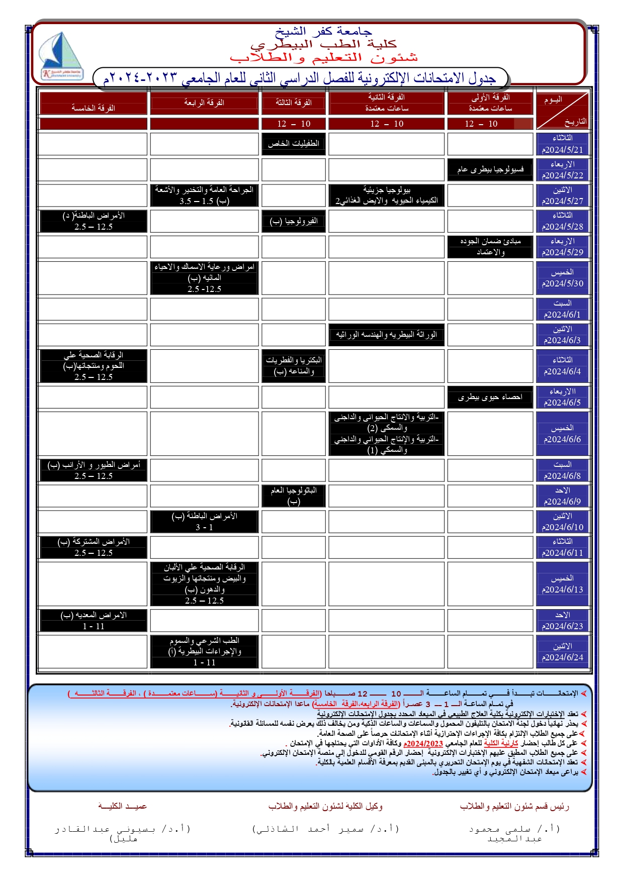 جدول الامتحانات الالكترونية الفصل الدراسى الثانى 2023/2024