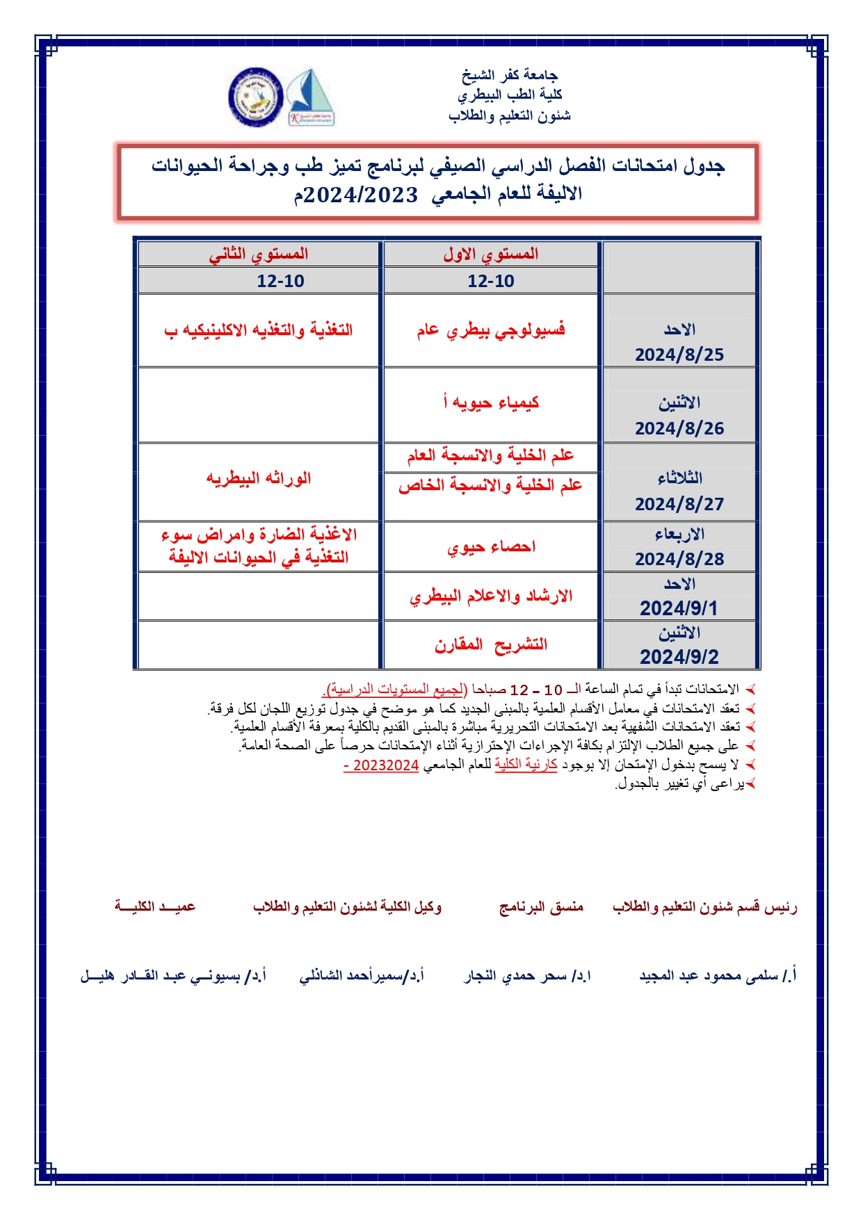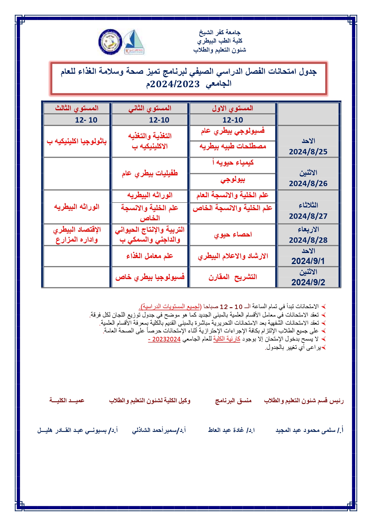 جداول امتحانات الفصل الدراسى الصيفى البرامج المميزة 2023/2024