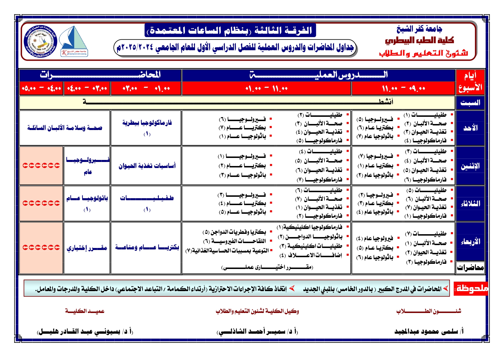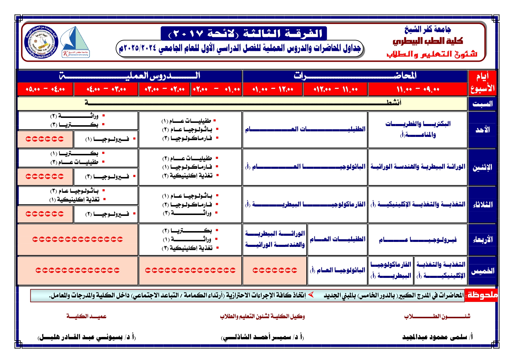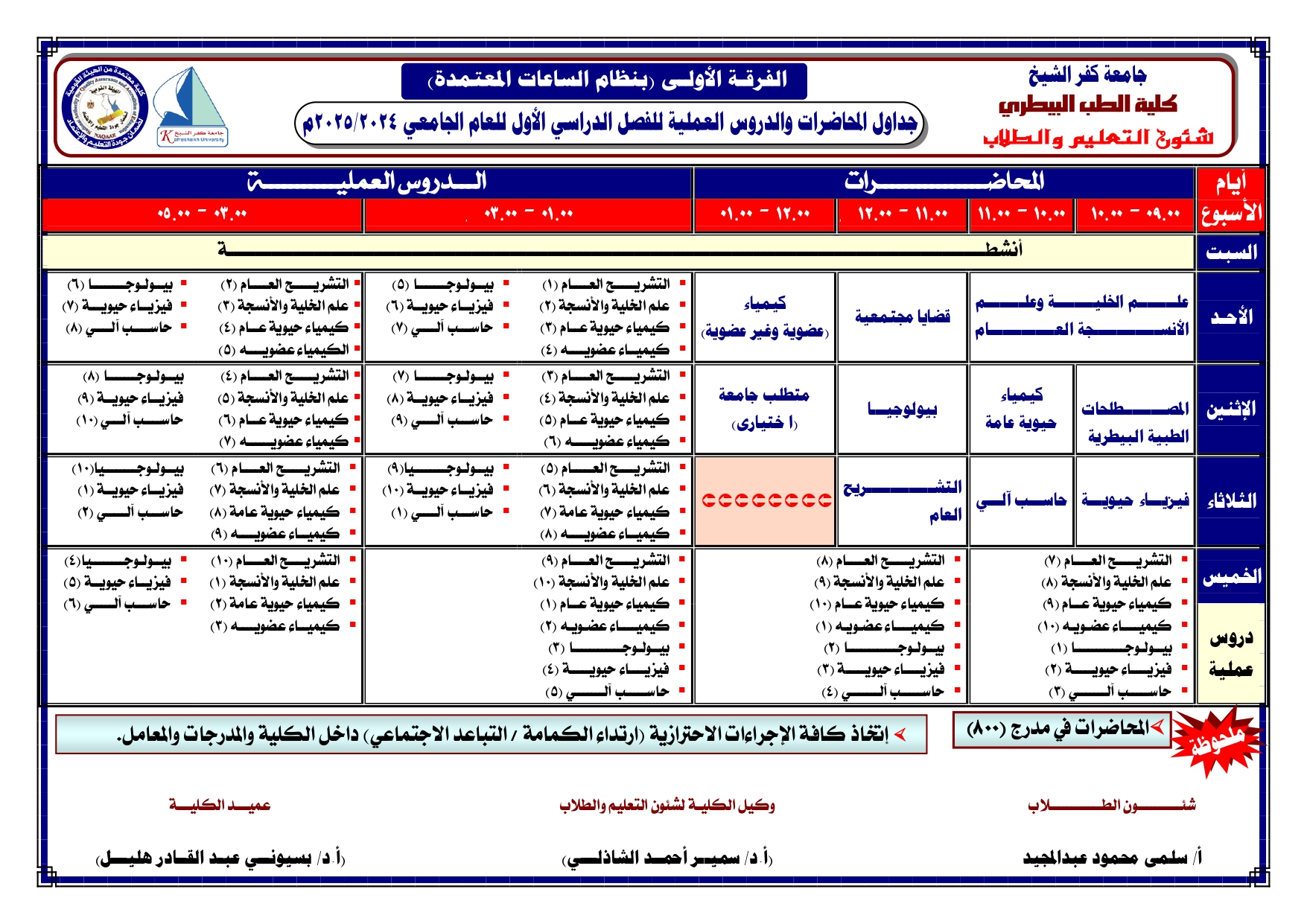الجداول الدراسية الفصل الدراسى الاول للعام الجامعى2025/2024