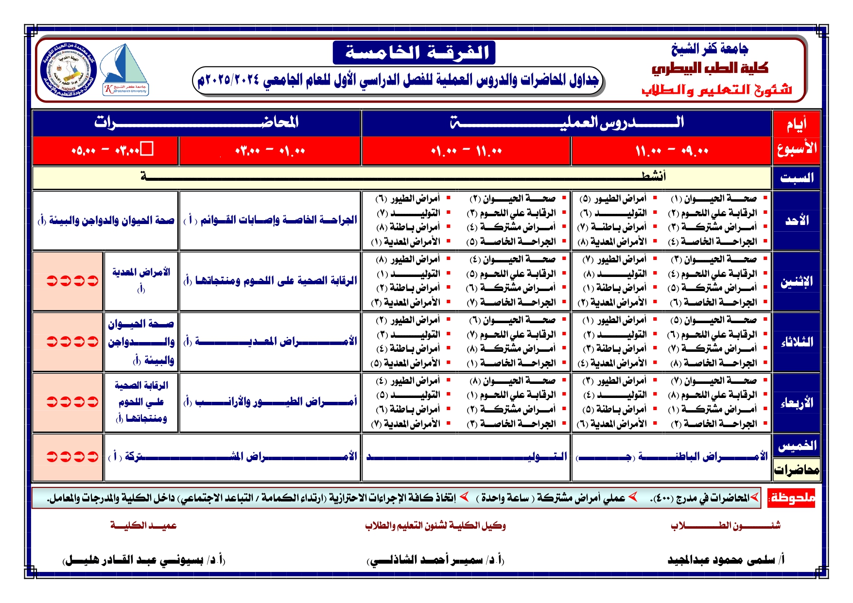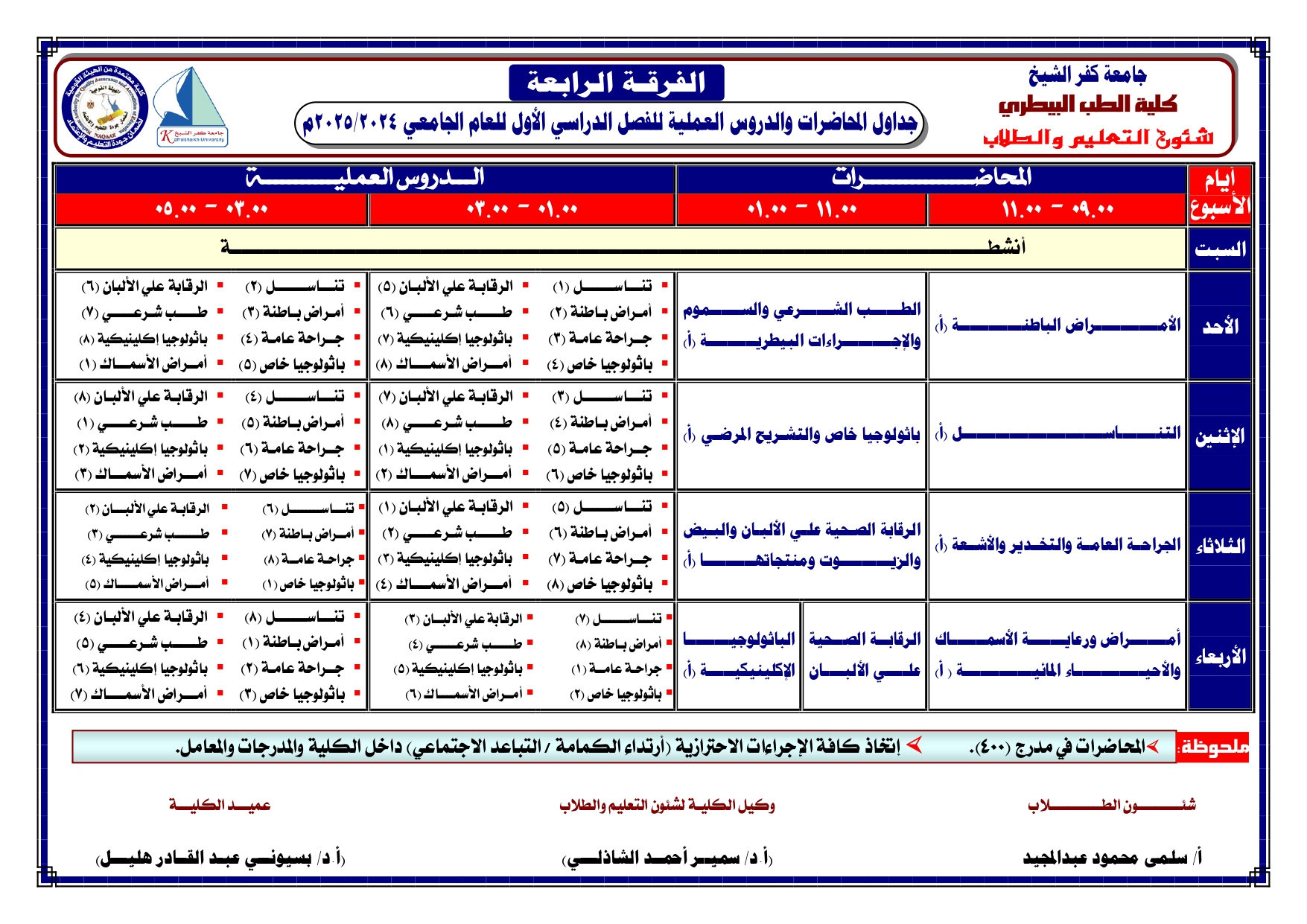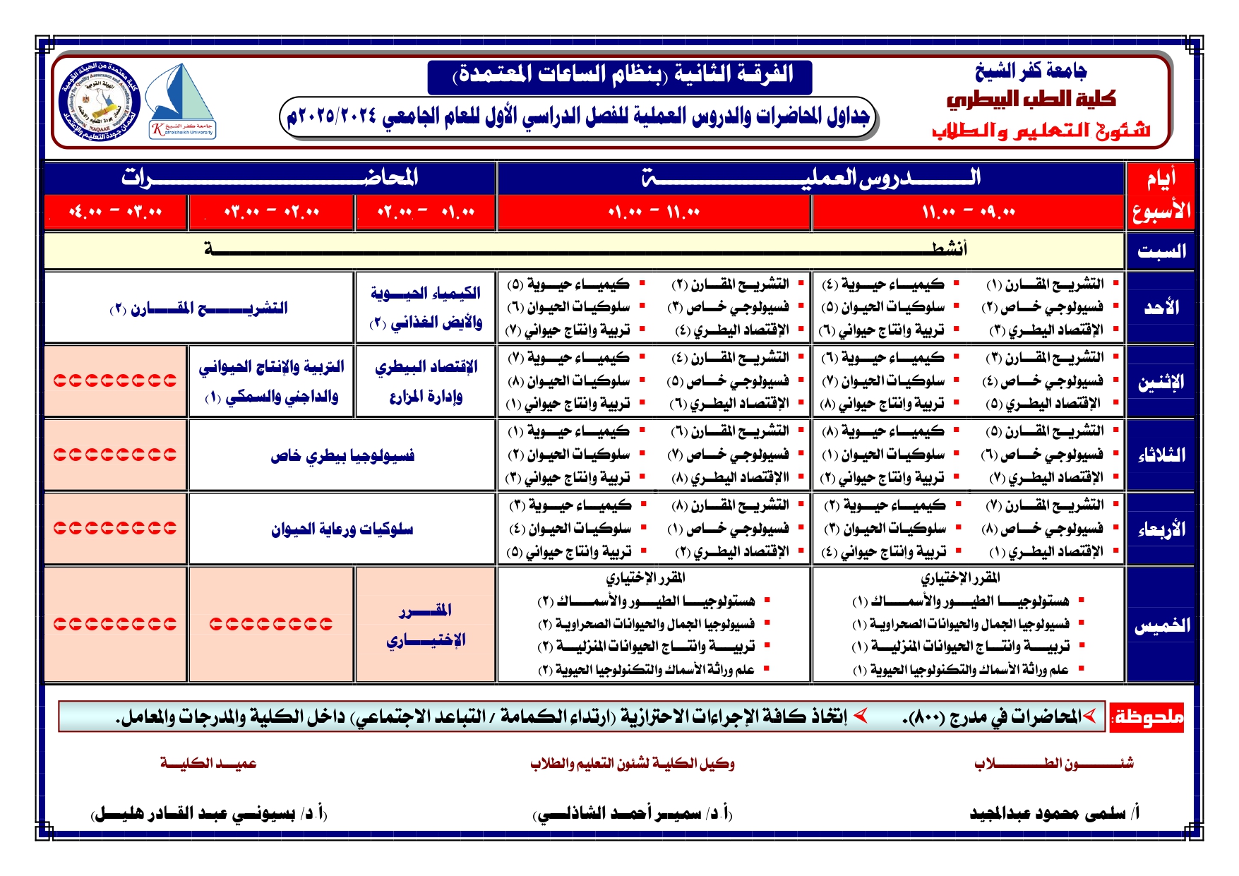 الجداول الدراسية الفصل الدراسى الاول للعام الجامعى2025/2024