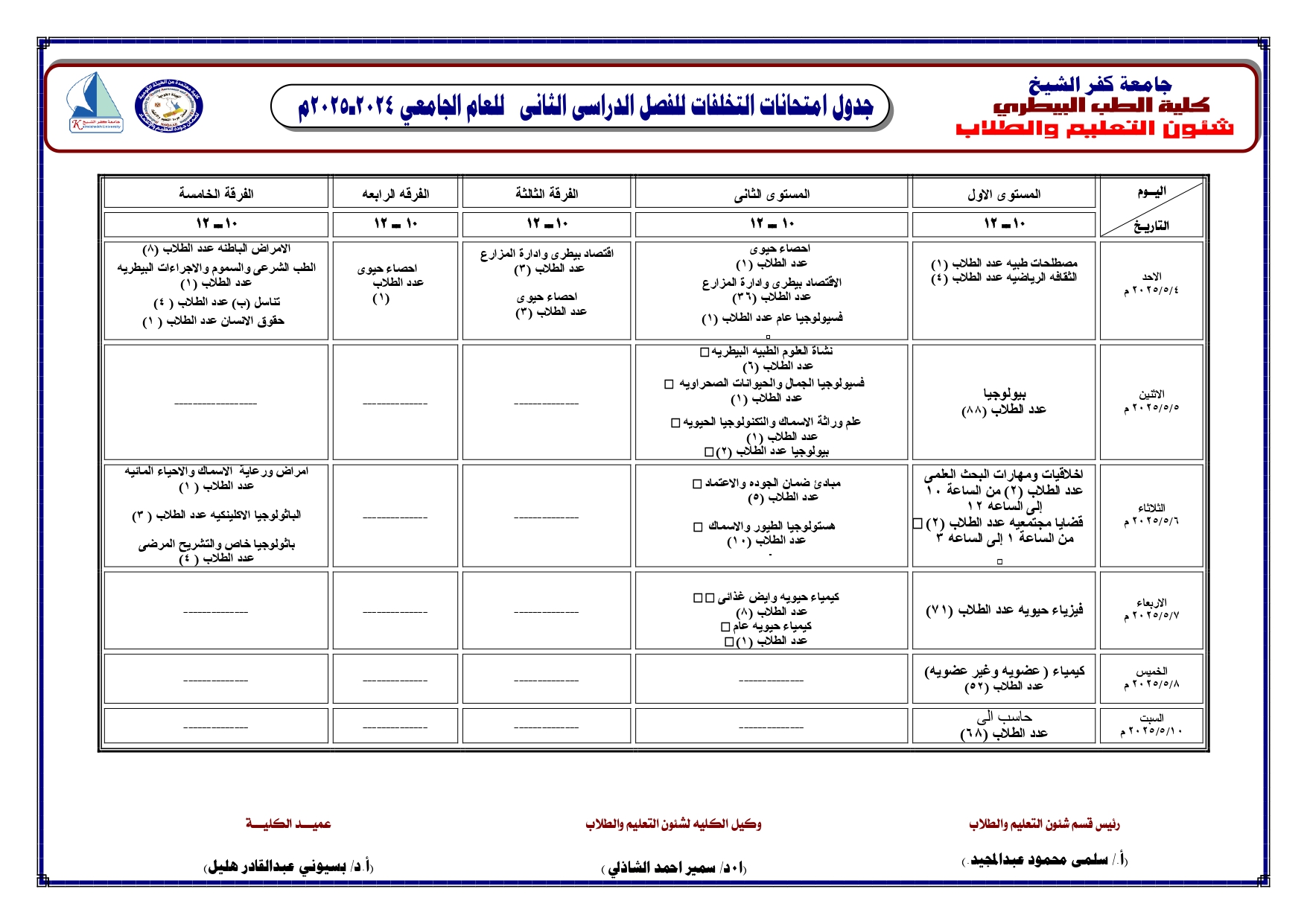 تـم تعديـل ميعاد اختبار مادة الحاسب الالى( تخلفات)على ان يكون يوم السبت الموافق 5/10//2025