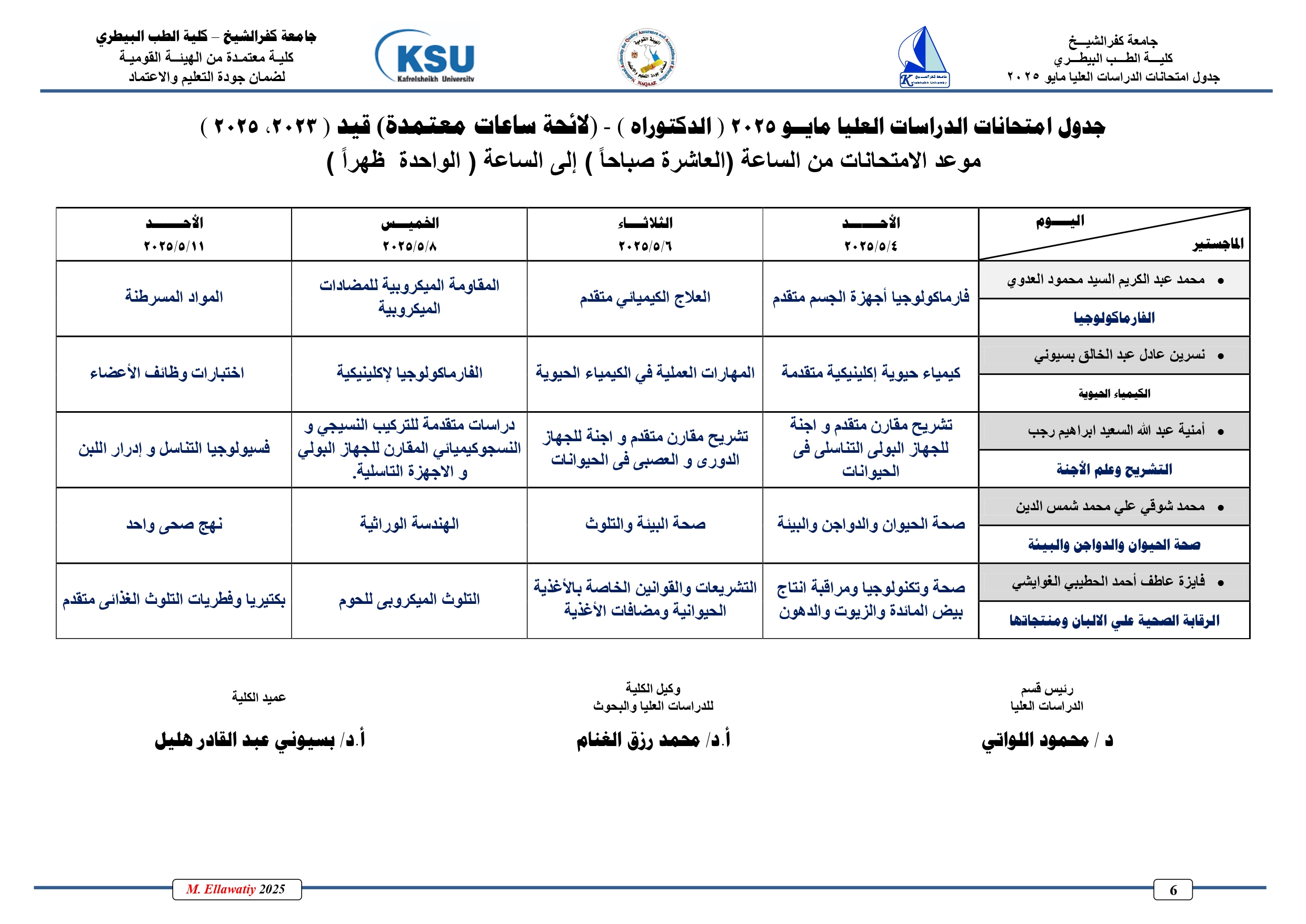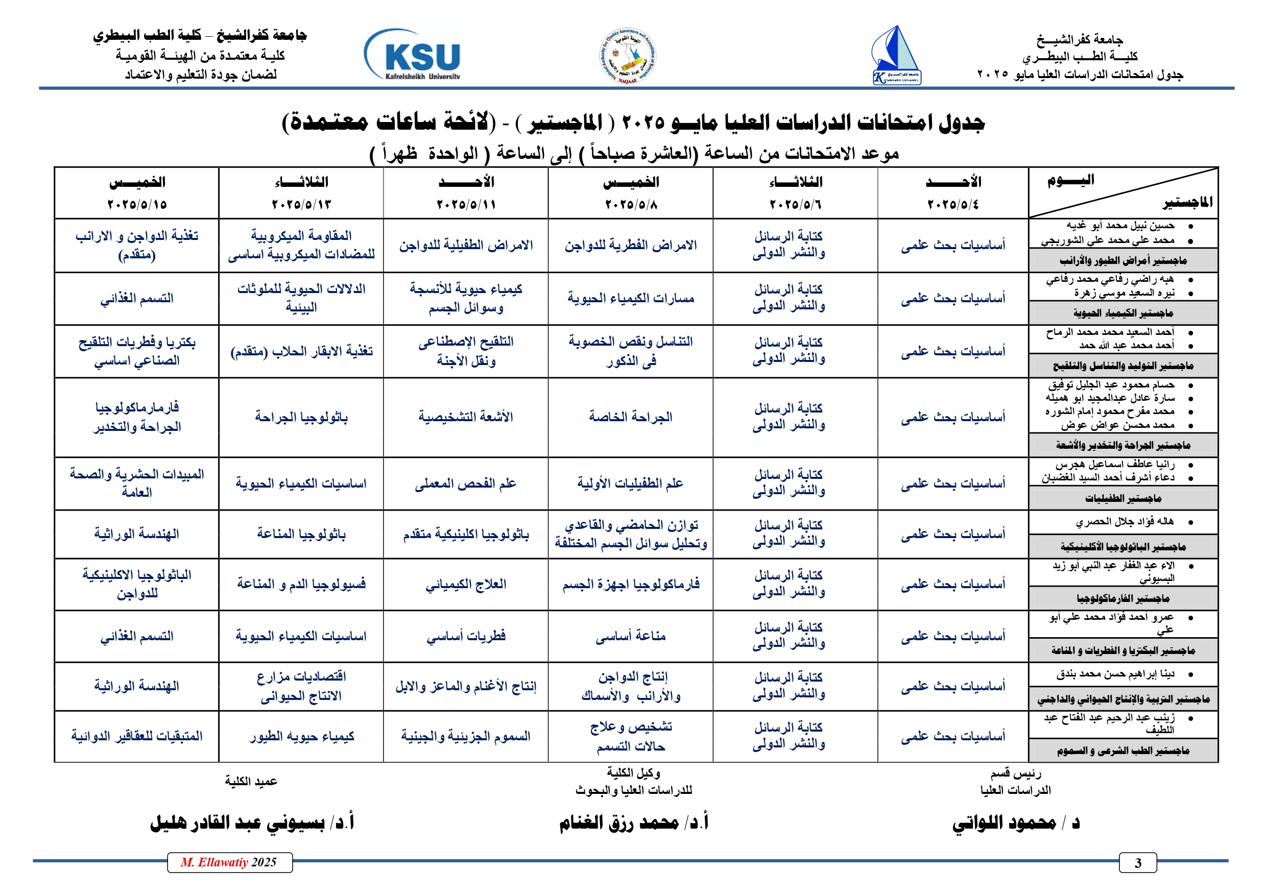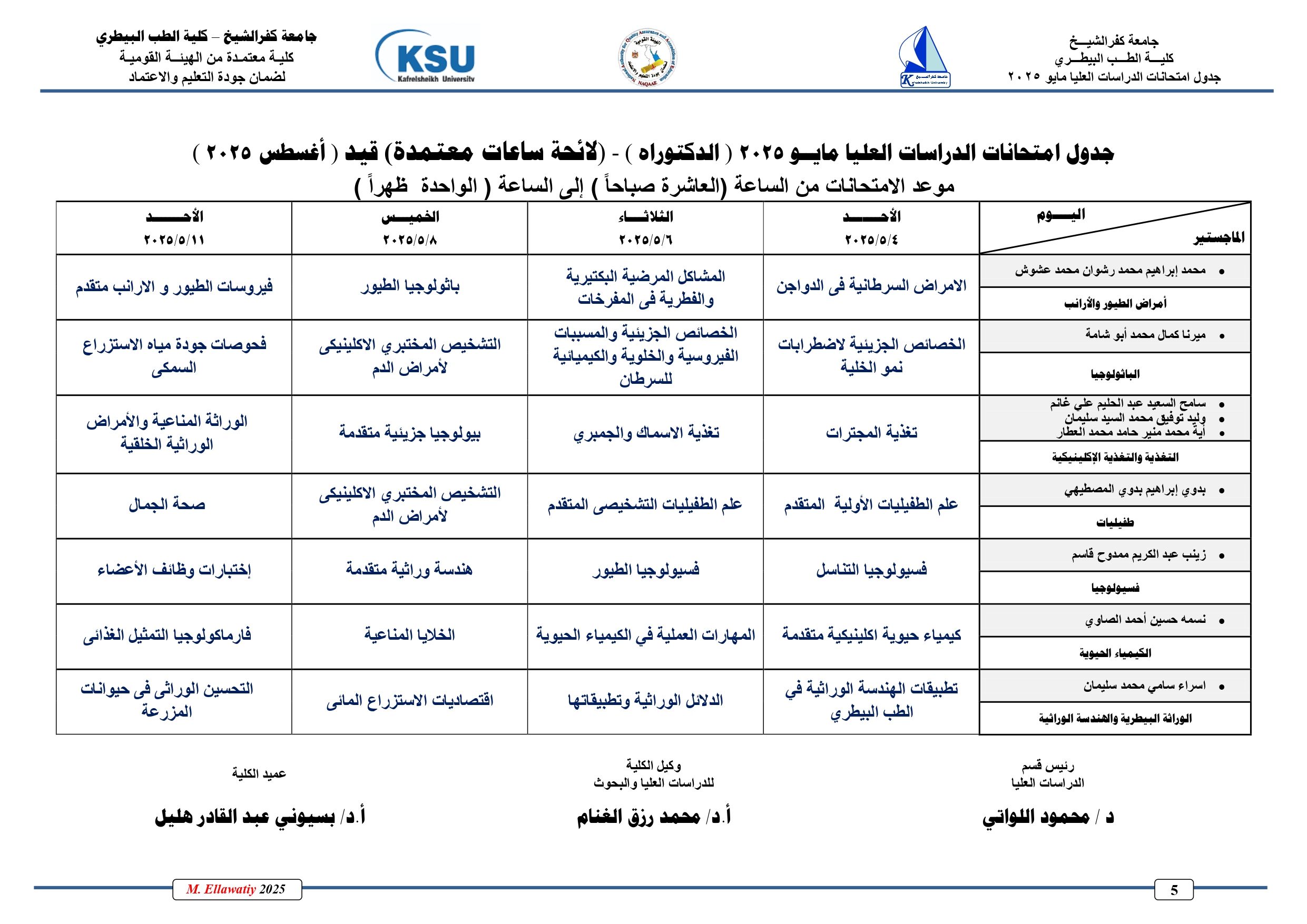 جدول امتحانات الدراسات العليا دور مايو للعام الجامعى 2025/2024 ( دبلوم- ماجستير - دكتوراة)