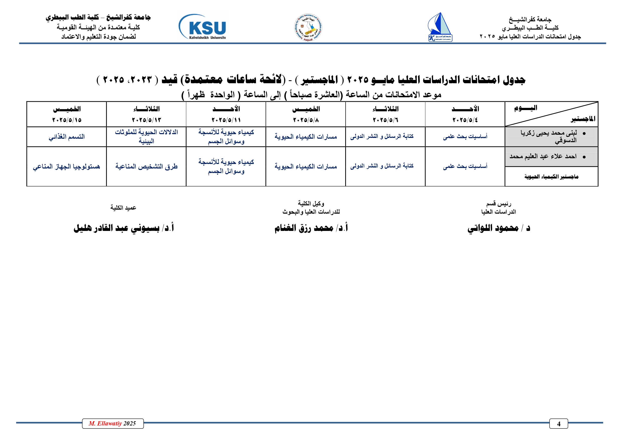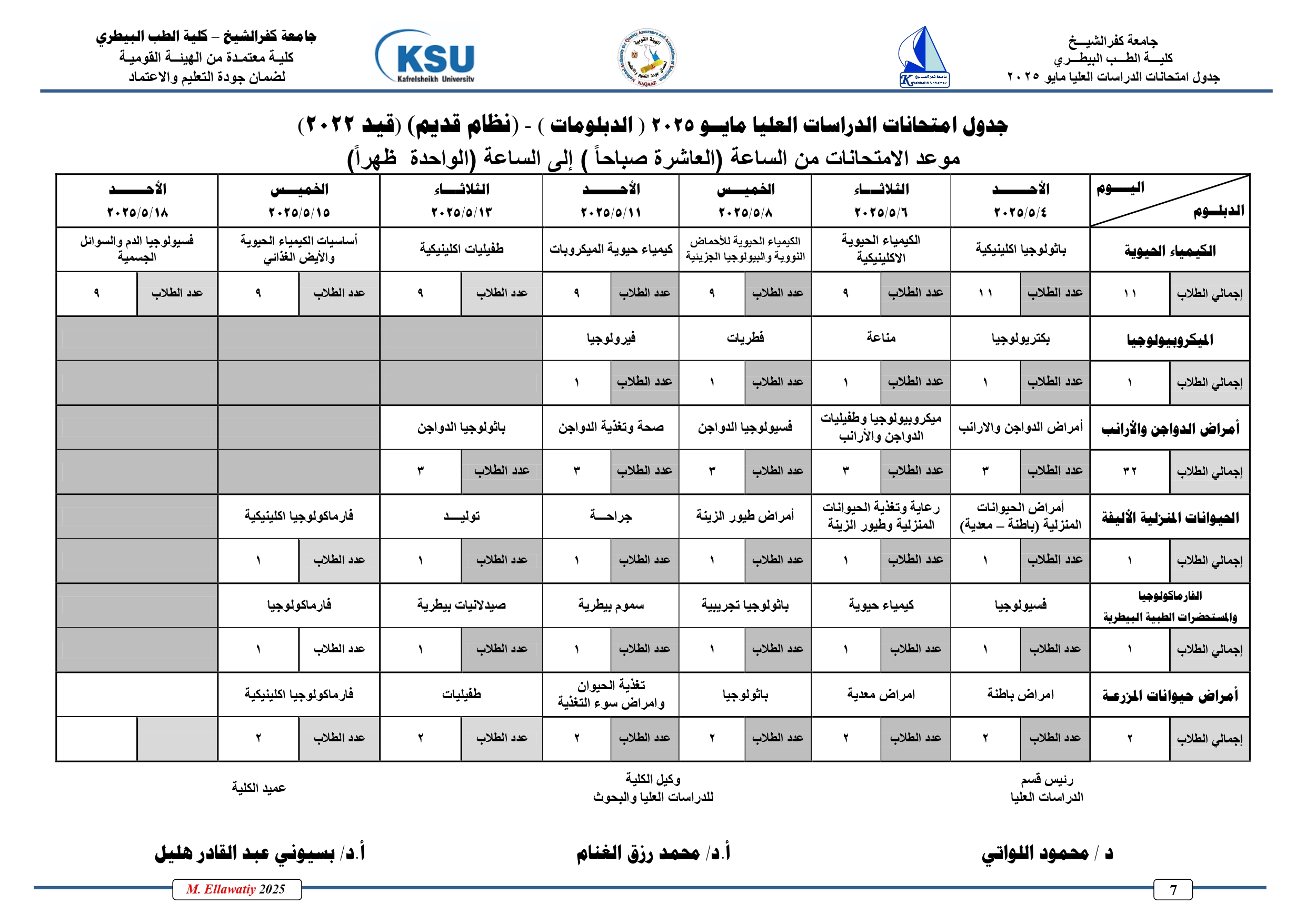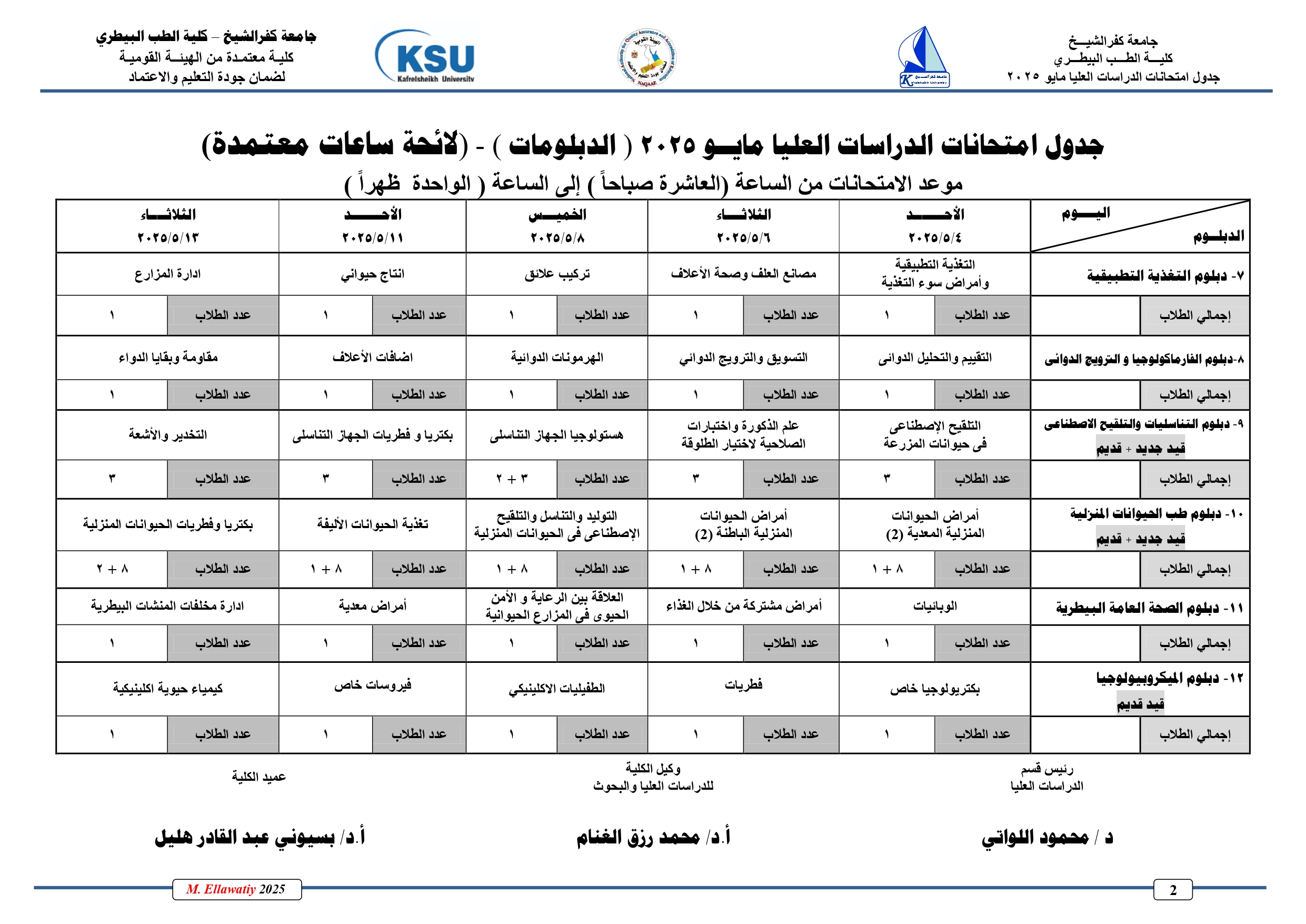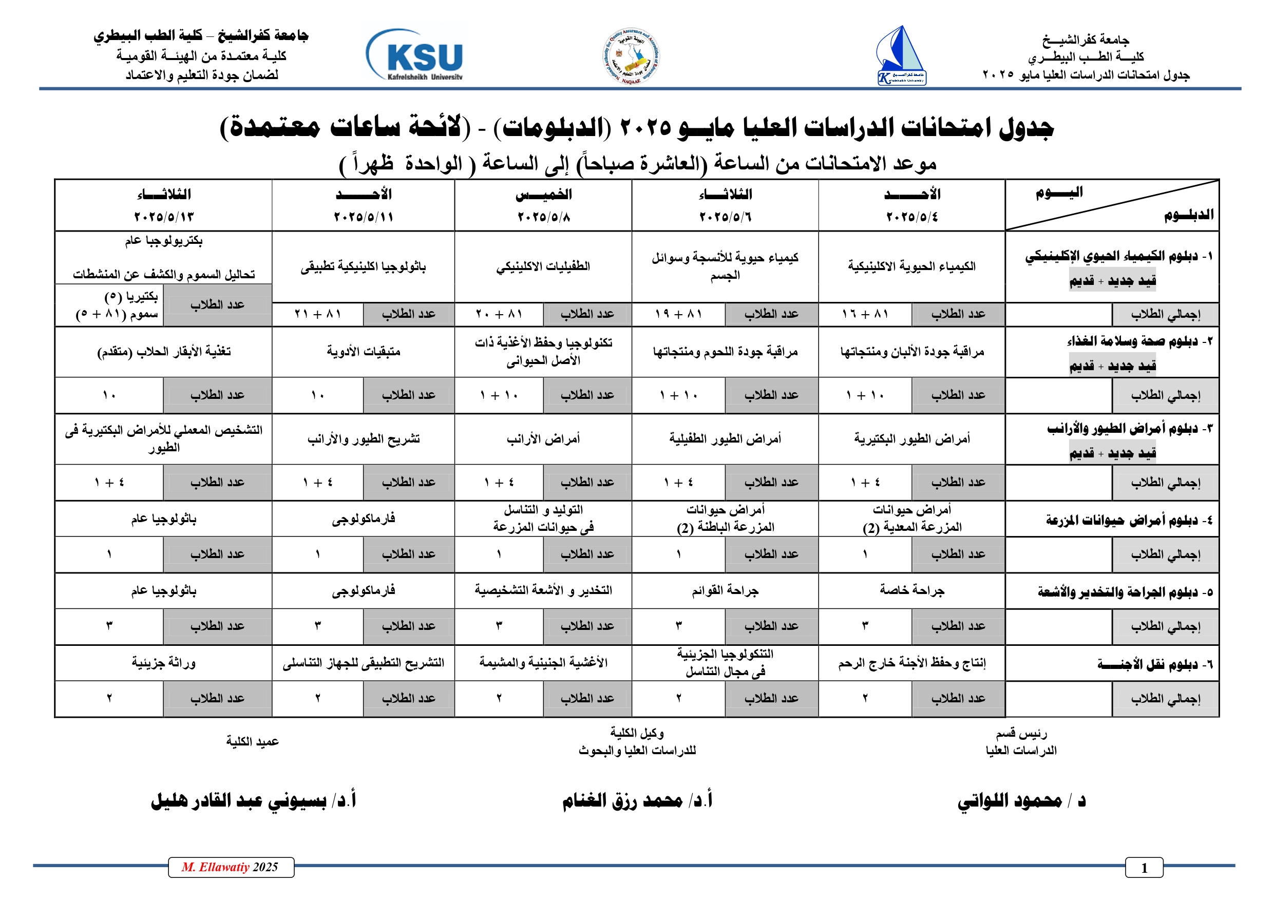 جدول امتحانات الدراسات العليا دور مايو للعام الجامعى 2025/2024 ( دبلوم- ماجستير - دكتوراة)