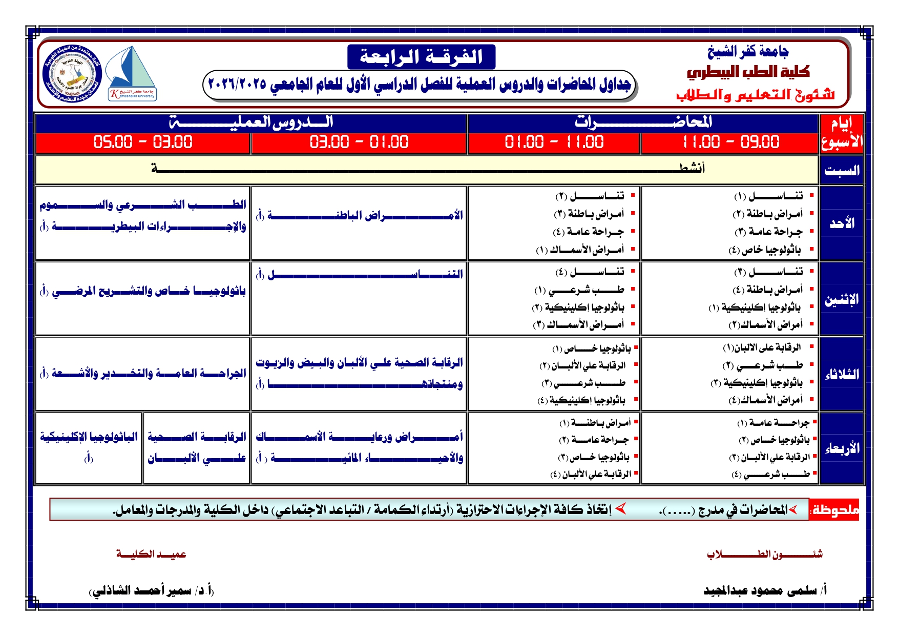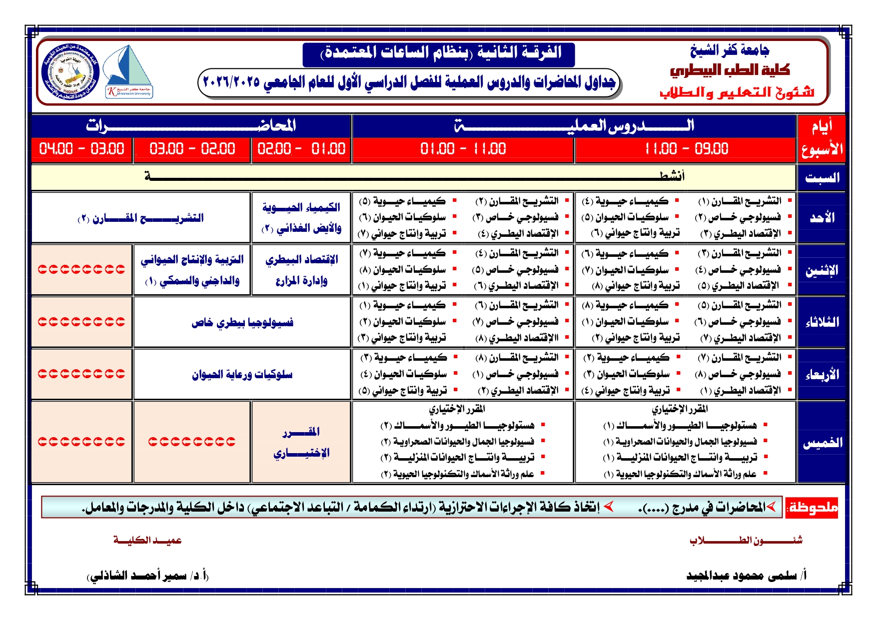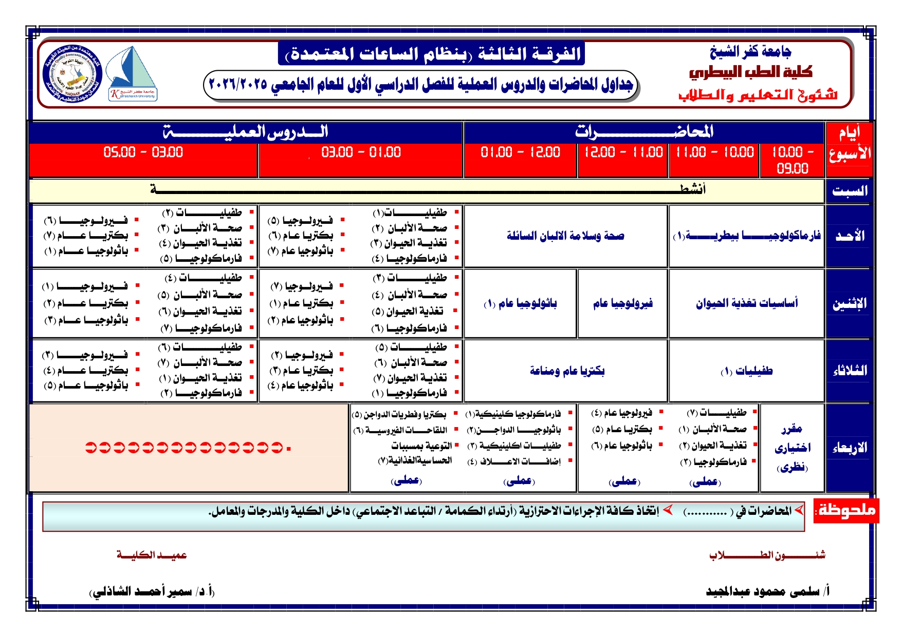 الجداول الدراسية الفصل الدراسى الاول للعام الجامعى2026/2025(ساعات معتمدة- سنوات دراسية)5
