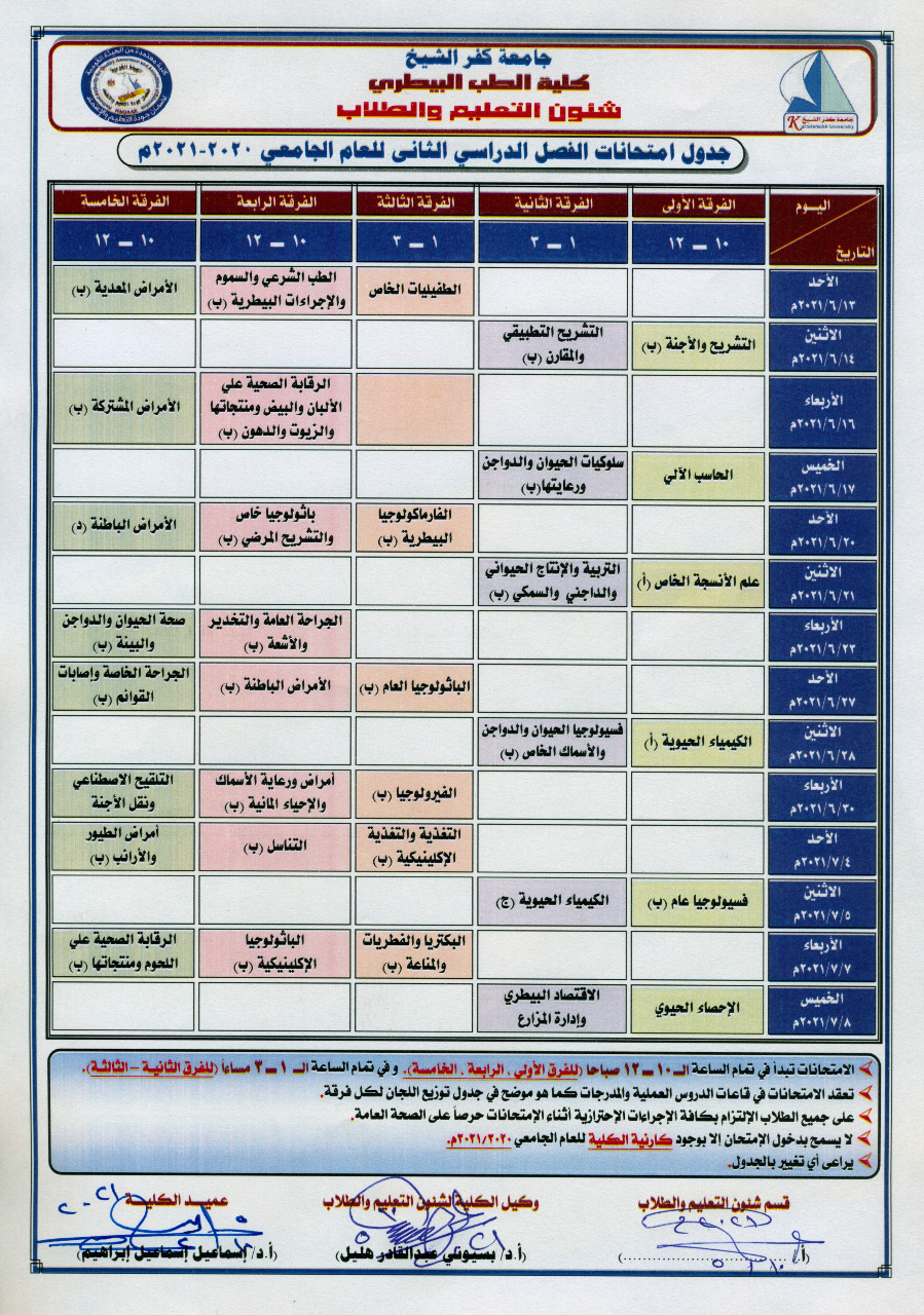 جدول امتحانات الفصل الدراسى الثانى لجميع الفرق الدراسيه