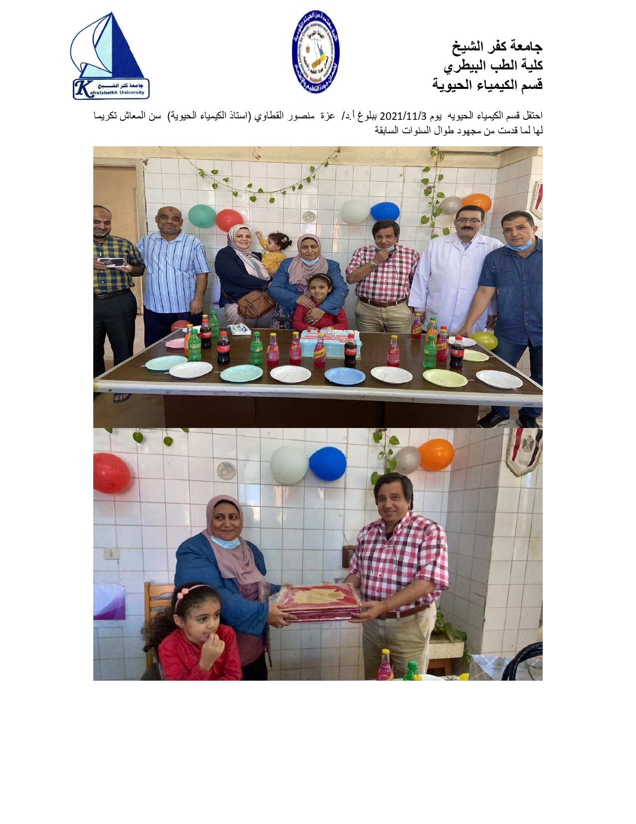 احتفل قسم الكيمياء الحيوى يوم 3/11/2021 ببلوغ الاستاذ الدكتور / عزة القطاوى سن المعاش