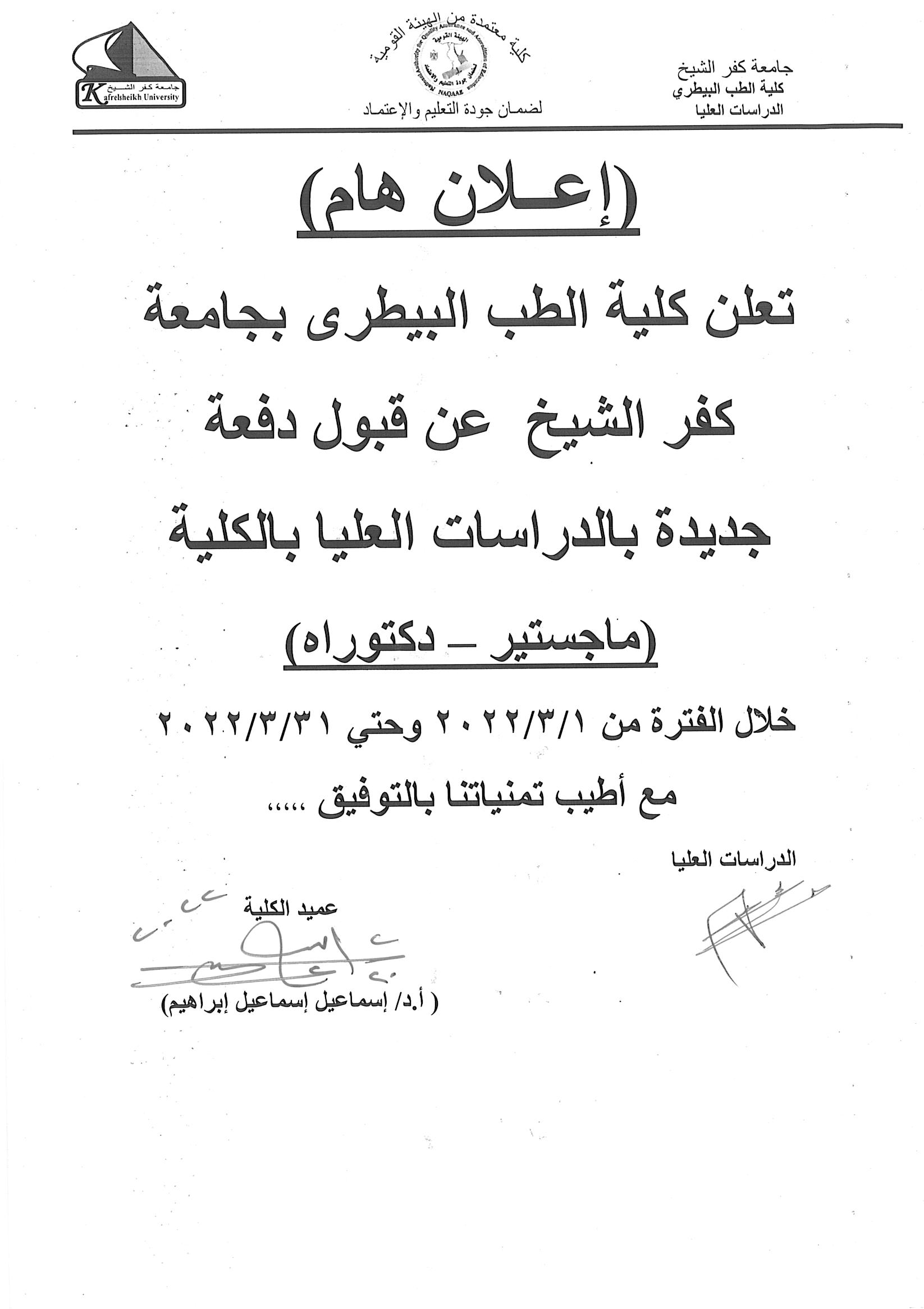 قبول دفعة جديدة من الدراسات العليا ( ماجستير- دكتوراة)
