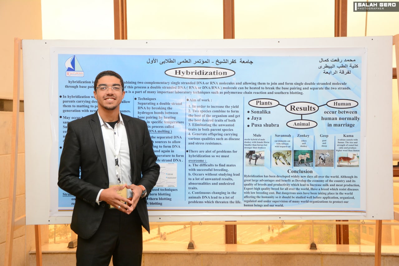 كما شاركت الكلية بقوة في الابحاث العلمية " البوسترات " ممثلة في الطالب / محمد رفعت قنديل الفرقة الرابعة ،