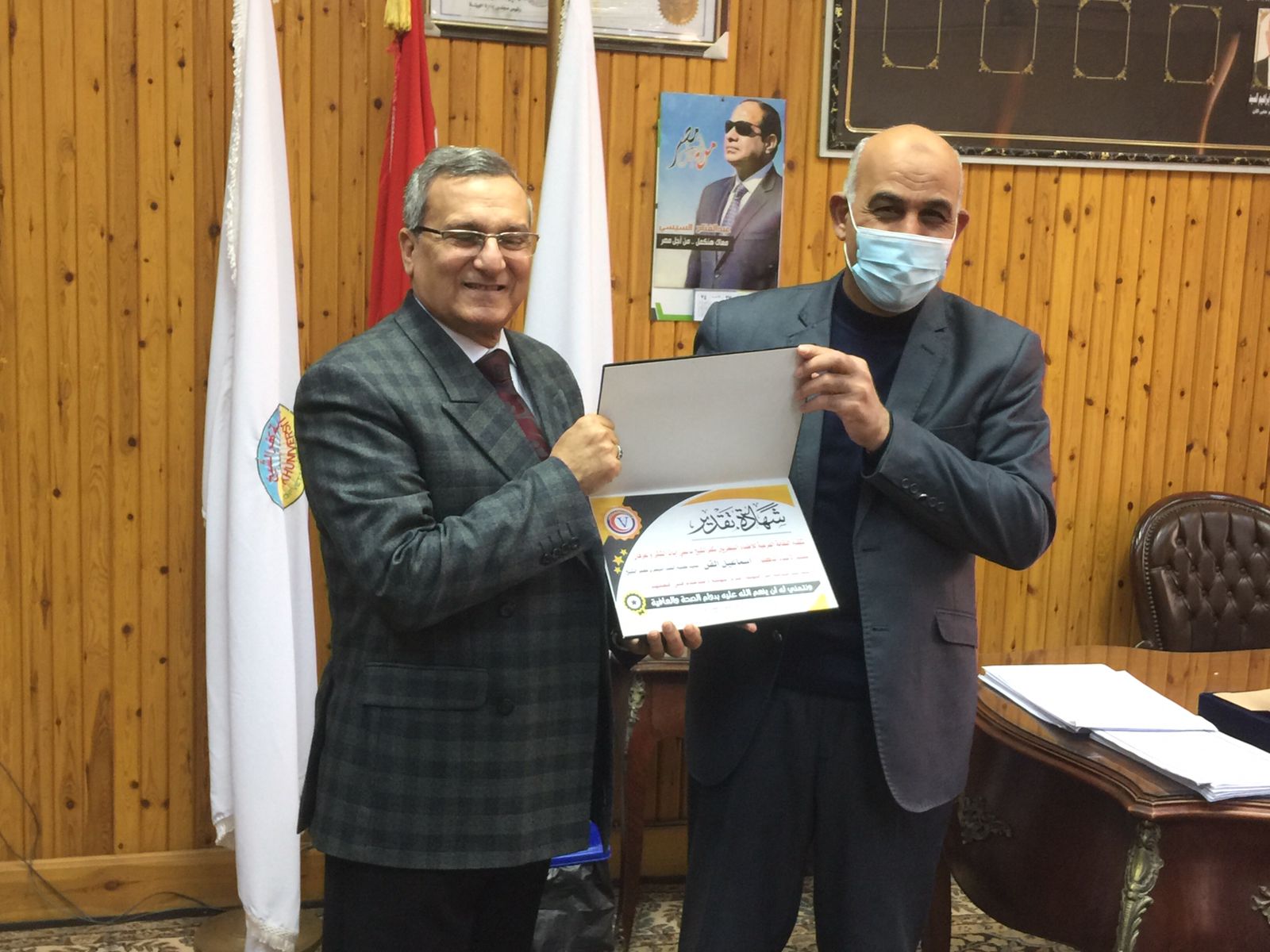 إسماعيل إبراهيم عميد كلية الطب البيطري وذلك لما قدمه من جهود أثرت في المهنه وساعدت في رفعتها