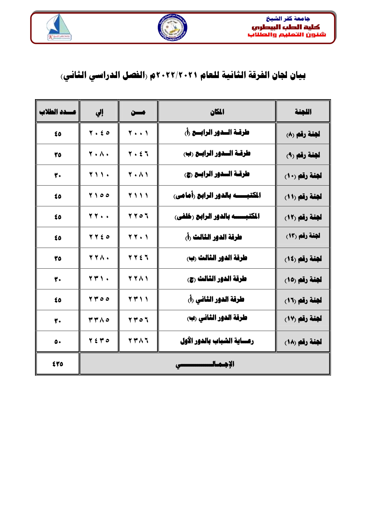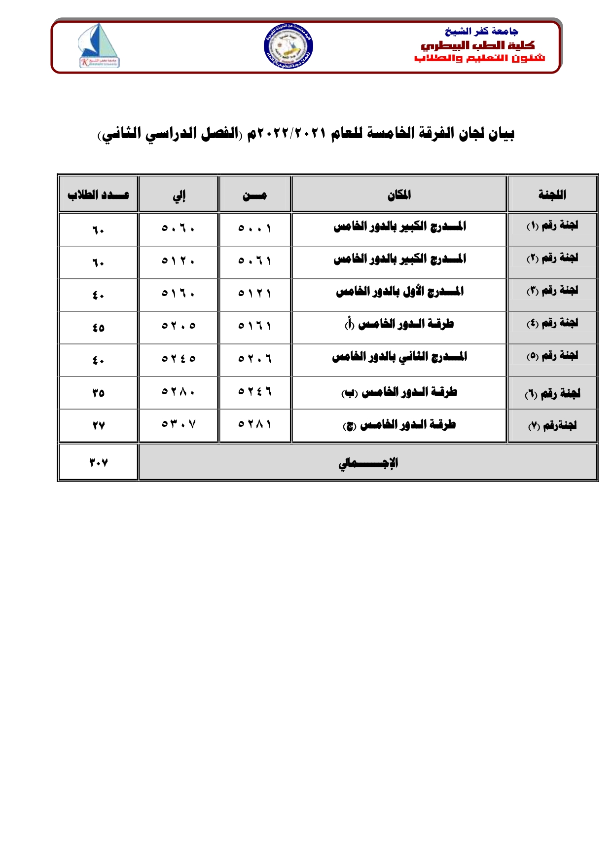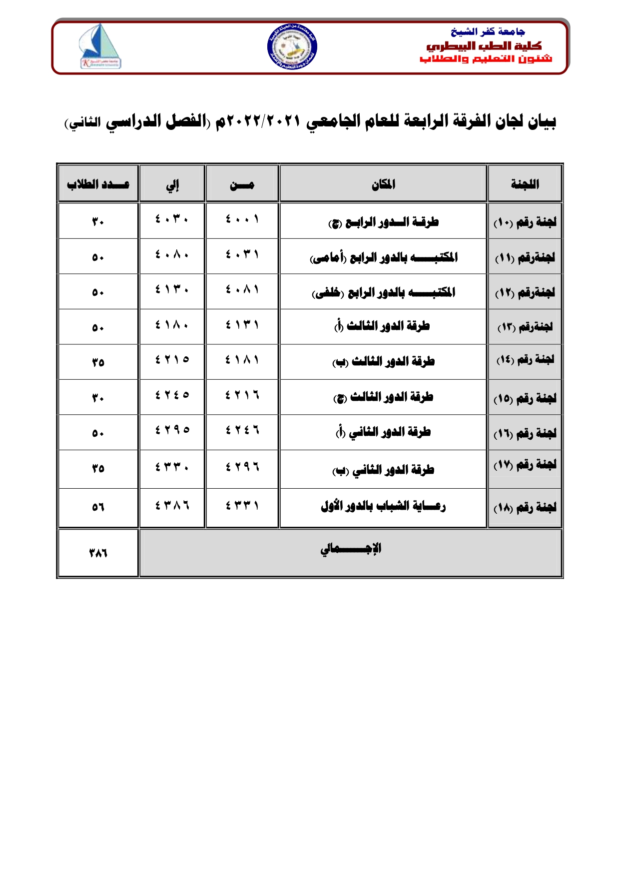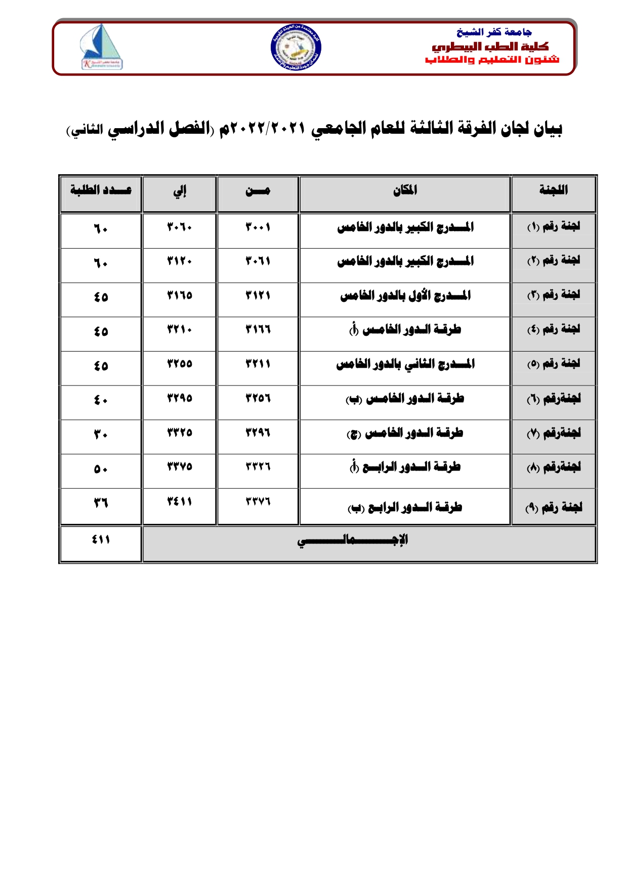 اماكن لجان الامتحانات للفصل الدراسى الثانى للعام الجامعى2022
