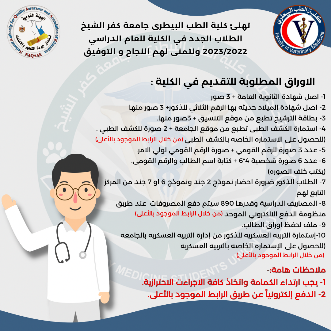 الاوراق المطلوبة للتقديم لكلية الطب البيطرى جامعة كفرالشيخ