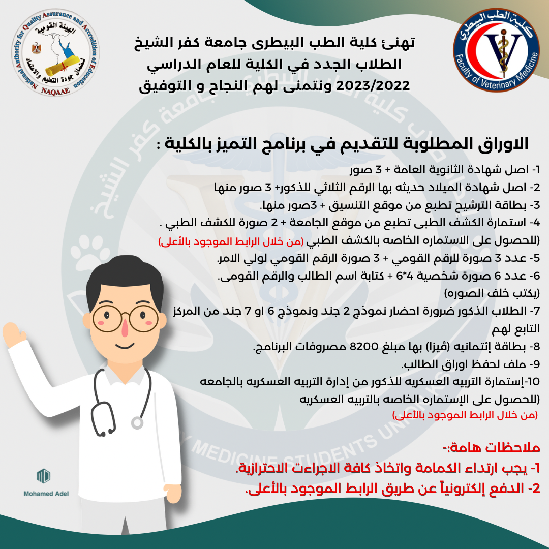 الاوراق المطلوبة للتقديم فى برنامج التميز بكلية الطب البيطرى جامعة كفرالشيخ
